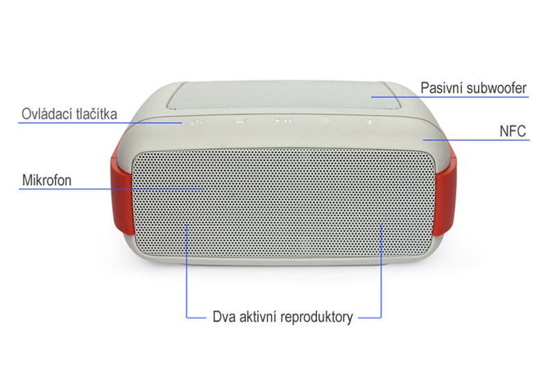 bezdrôtový prenosný stereo reproduktor, vodeodolný