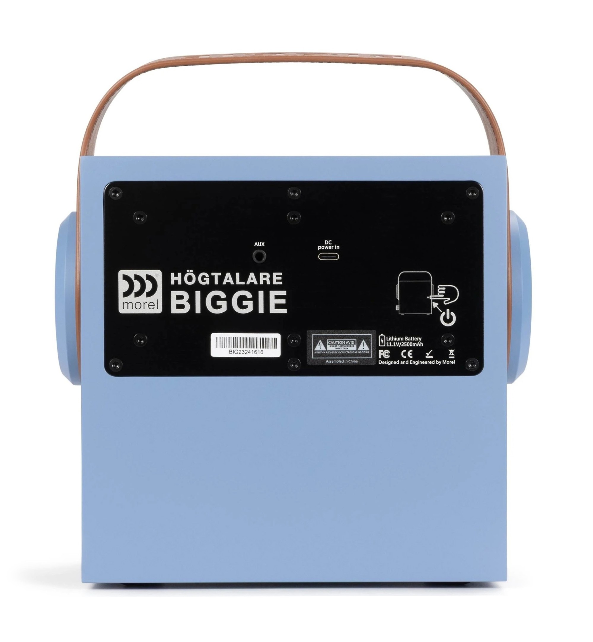 \n\nNapriek svojmu názvu je Biggie prekvapivo kompaktný. Jeho telo má rozmery približne 18 × 18 cm a nadväzuje na charakteristický štvorcový dizajn väčšieho modelu Högtalare. Minimalistické prevedenie, kvalitné materiály a typická pozornosť Morelu k detailu vytvárajú reproduktor, ktorý nepôsobí len ako praktický doplnok, ale ako plnohodnotný dizajnový audio komponent. Napriek svojim malým rozmerom dokáže Biggie ponúknuť prekvapivo plný a dospelý zvuk, ktorý je výsledkom premyslenej konštrukcie, kvalitných meničov a precízneho digitálneho ladenia.