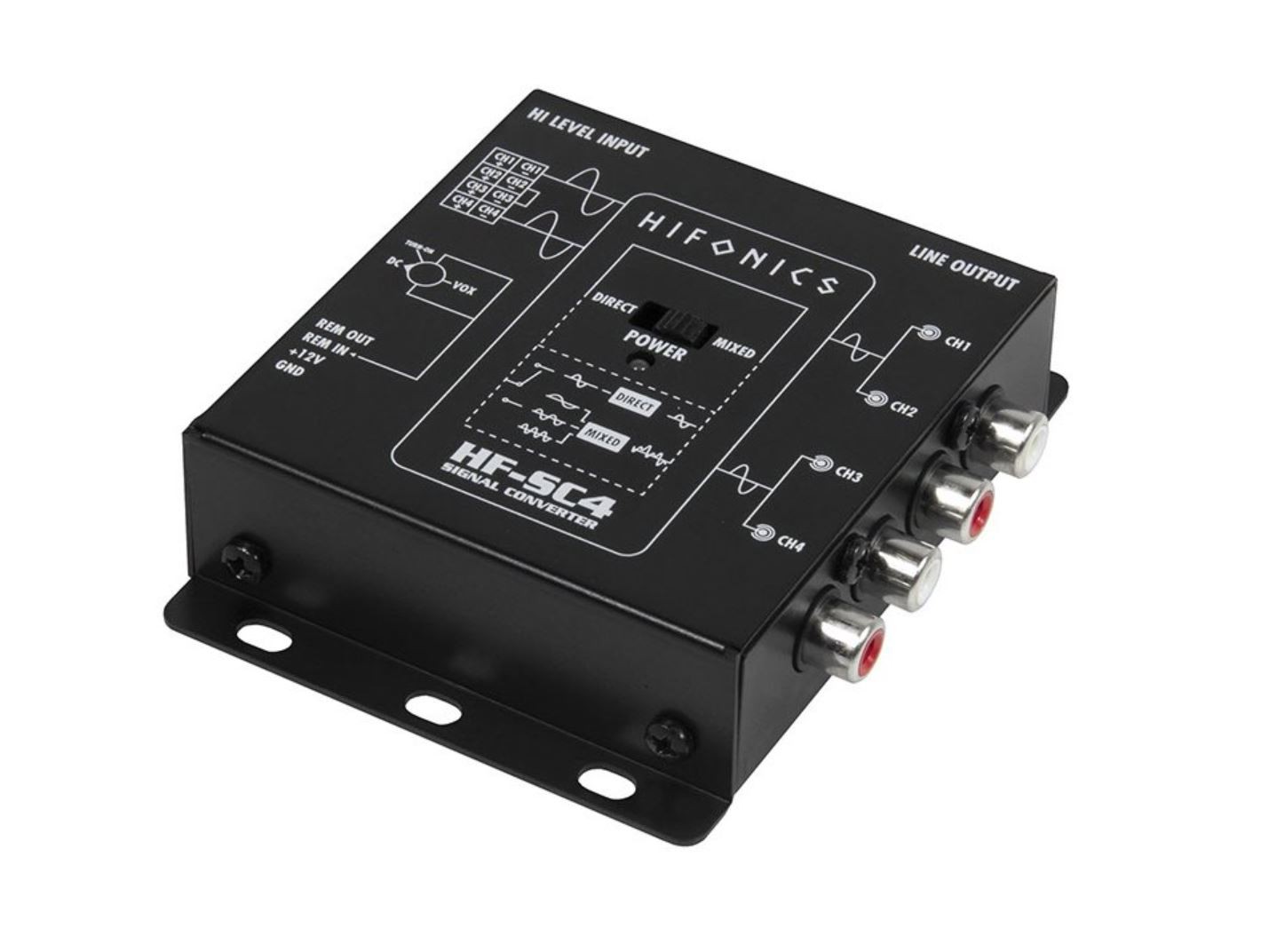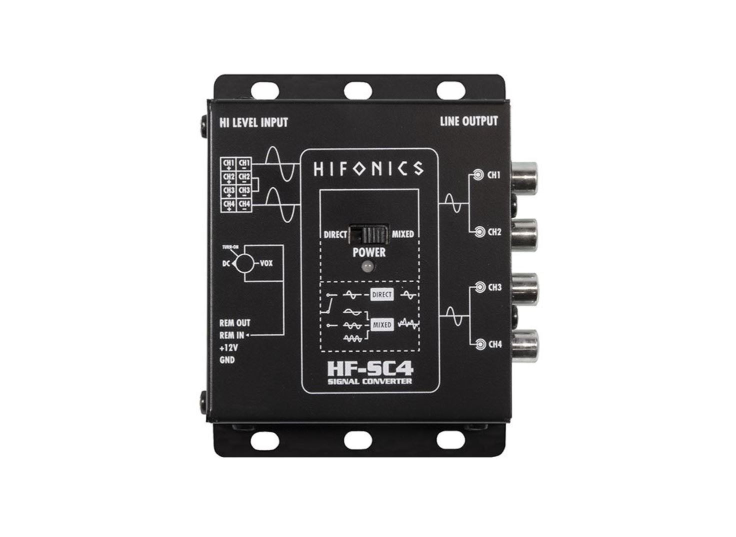 Prevodníky signálu od Hifonics zaujmú svojimi skvelými zvukovými vlastnosťami. Vývojári kládli veľký dôraz na vynikajúce technické údaje už od fázy koncepcie. A môžu byť skutočne vidieť a počuť: senzačne vysoké pomery signálu k šumu 115 - 121 dB s veľmi nízkymi faktormi skreslenia 0,001 % súčasne. Sú navrhnuté pre pripojenie k bežným autorádiám, ktoré dodávajú až 50 W RMS na kanál do 2 ohmov. Ako ďalšiu zvláštnosť majú viackanálové prevodníky integrovanú funkciu súčtu. Tento obvod je „must have“ pre mnoho nových vozidiel, ak nemožno hudobný signál odpočúvať „na jeden záťah“, ale frekvenčné rozsahy pre továrensky inštalované reproduktory boli elektricky oddelené. Konvenčný prevodník by tu bol úplne zbytočný. U prevodníkov HF-SC možno rozdelené výstupné signály z továrenského systému jednoducho opäť zlúčiť aktiváciou funkcie "MIXED". Sofistikovaná elektronika potom na výstupoch generuje signál v plnom rozsahu, ktorým možno optimálne napájať externé DSP alebo zosilňovače. Vďaka EPS možno prevodníky ľahko pripojiť aj k továrenským rádiam, ktoré majú tzv. obvod detekcie záťaže. Ďalšiu funkciu pre potlačenie rušenia možno aktivovať pomocou prepojok "Floating Ground".
