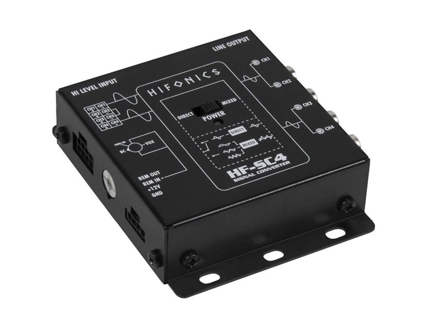 Prevodníky signálu od Hifonics zaujmú svojimi skvelými zvukovými vlastnosťami. Vývojári prikladali veľký význam vynikajúcim technickým údajom už od fázy koncepcie. A môžu byť skutočne vidieť a počuť: senzačne vysoké pomery signálu k šumu 115 - 121 dB s veľmi nízkymi faktormi skreslenia 0,001 % súčasne. Sú navrhnuté na pripojenie k bežným autorádiám, ktoré dodávajú až 50 W RMS na kanál do 2 ohmov. Ako ďalšiu zvláštnosť majú viackanálové prevodníky integrovanú funkciu súčtu. Tento obvod je „must have“ pre mnoho nových vozidiel, pokiaľ nemožno hudobný signál odpočúvať „na jeden záťah“, ale frekvenčné rozsahy pre továrensky inštalované reproduktory boli elektricky oddelené. Konvenčný prevodník by tu bol úplne zbytočný. S HF-SC konvertory môžu byť rozdelené výstupné signály z továrenského systému jednoducho znovu zlúčené aktiváciou funkcie "MIXED". Sofistikovaná elektronika potom na výstupoch generuje signál v plnom rozsahu, ktorým je možné optimálne napájať externé DSP alebo zosilňovače. Vďaka EPS je možné prevodníky ľahko pripojiť aj k továrenským rádiám, ktoré majú tzv. obvod detekcie záťaže. Ďalšiu funkciu pre potlačenie rušenia je možné aktivovať pomocou prepojok "Floating Ground".