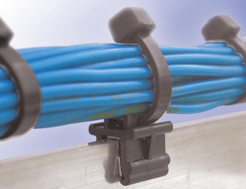 Jednoduché a rýchle prichytenie káblového zväzku, hadice alebo rúrky na hranu s hrúbkou 0,7 - 3 mm. Vhodné pre automobilový priemysel, strojárstvo, elektroinštalačné skrine a rozvádzače, kancelárske stroje a pod.