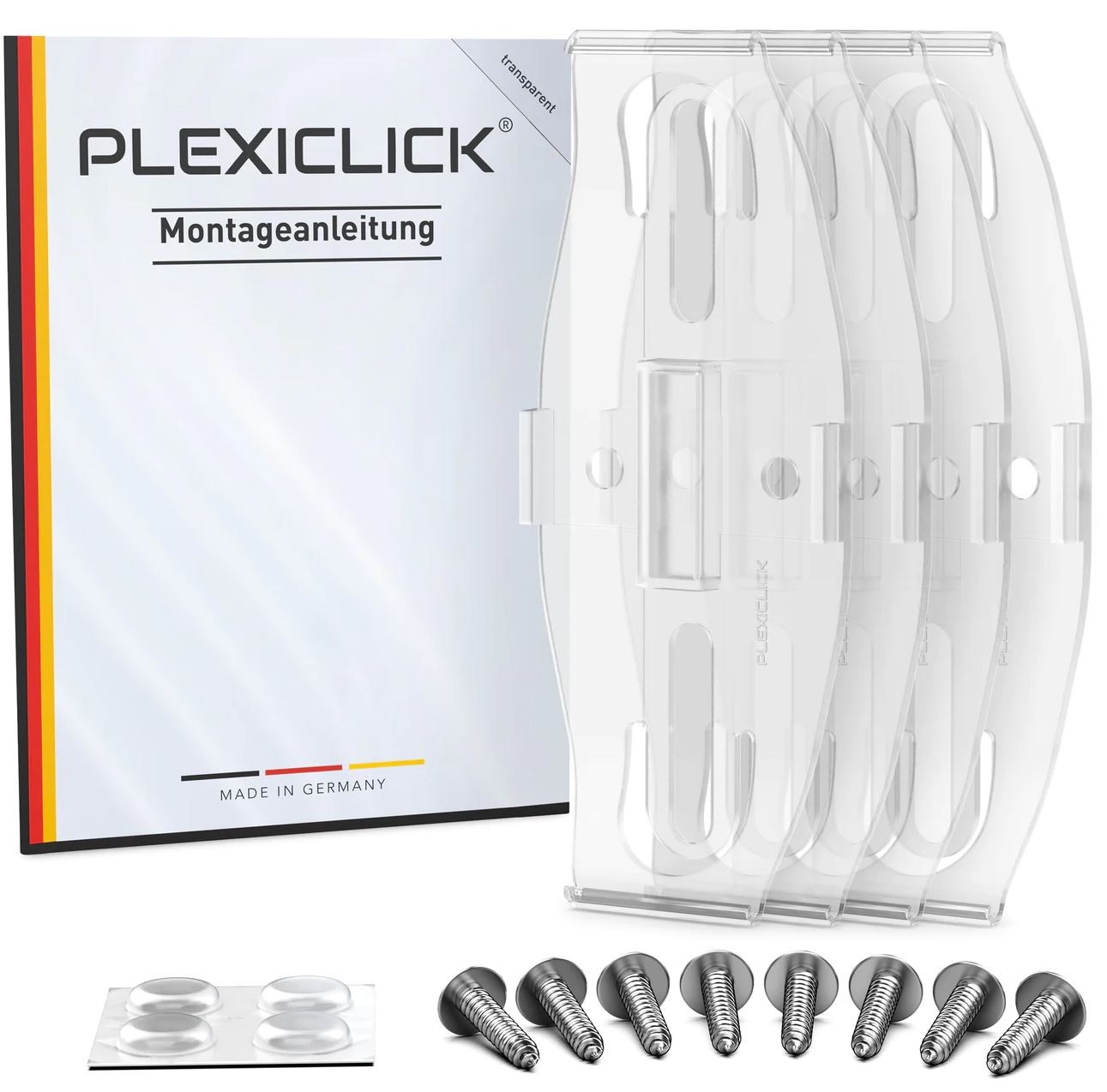- 4x transparentný držiak PlexiClick® V1 pre prednú a zadnú poznávaciu značku.