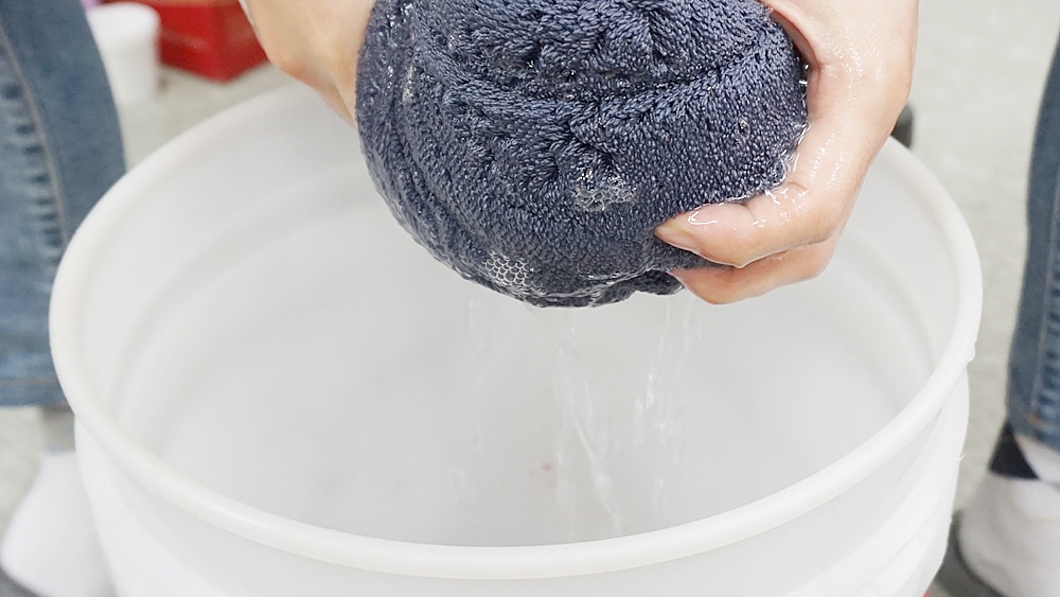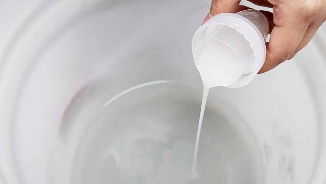 - Vytvorte vo vedre dostatočné množstvo kvapaliny pre ponorenie všetkých uterákov a utierok.