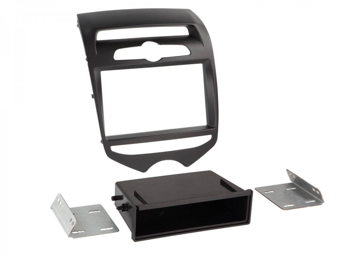 - Rozmery otvoru zodpovedajú rozmerom čelného panelu značkového 1DIN / 2DIN autorádia (Kenwood, Alpine, Sony, Clarion, JVC, Pioneer).