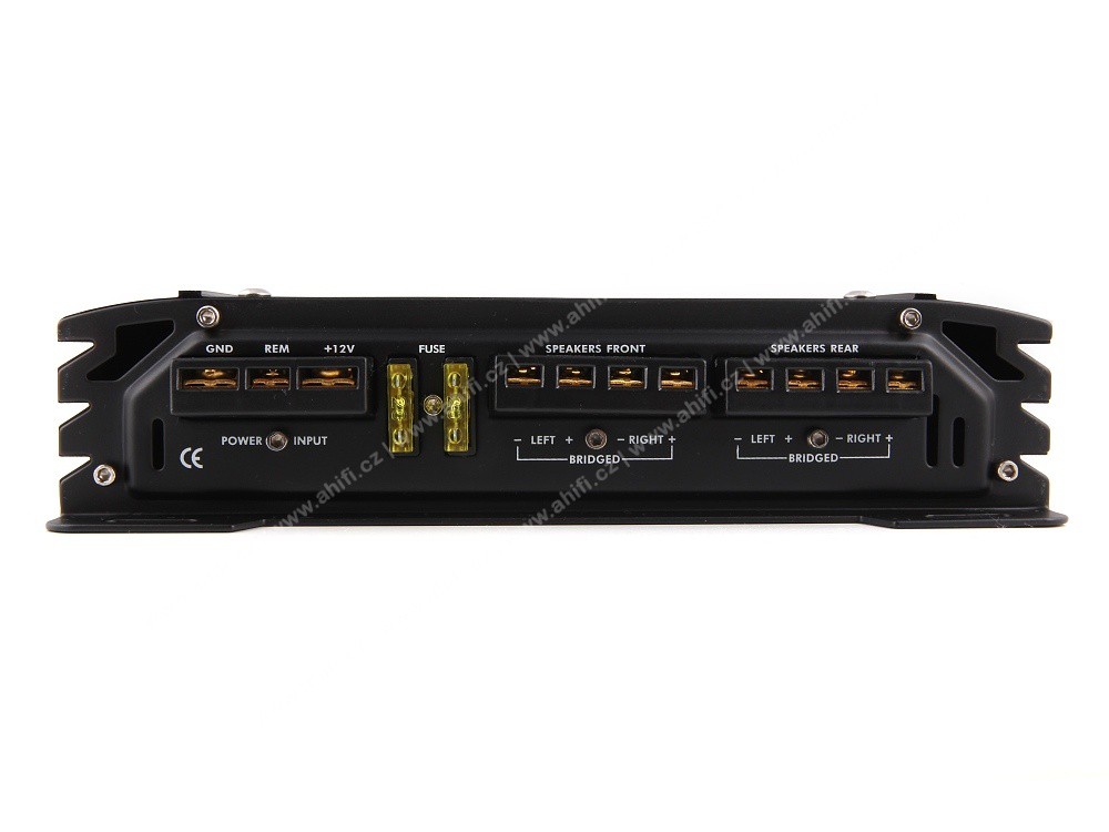 Kvalitne postavený 4kanálový zosilňovač s reálne uvedeným výkonom, ktorý bez problémov dokáže vybudiť subwoofer s výkonom od 150 - 250 W RMS na 4 Ω a predné reproduktory k tomu. Spoľahlivý zosilňovač za rozumnú cenu.
