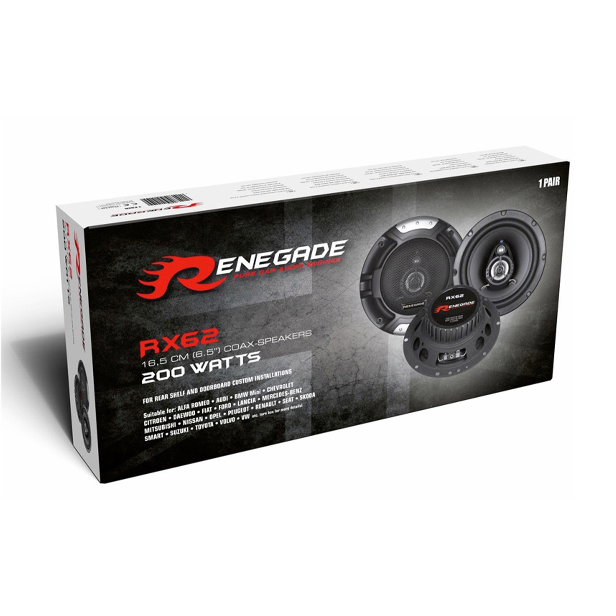 Renegade je nemecká značka, ktorá sa zameriava prevažne na poslucháča – začiatočníka. Ponúka cenovo dostupné reproduktory, zosilňovače a subwoofery, ktoré sú postavené na výdrži a bezporuchovosti. Reproduktory z radu RX ponúkajú vo svojej cenovej relácii plný a dynamický zvuk, ktorý mladšia generácia miluje. Najviac predávaným tovarom sú však káblové sady, ktoré obsahujú káble, ktoré sa nelámu a netrpia na rušenie signálu, ako to často býva u iných výrobcov káblových sád.