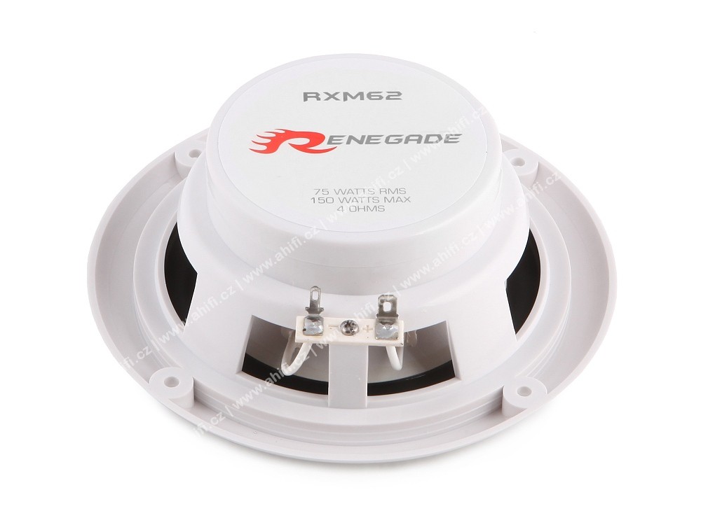 Vlhku odolné reproduktory Renegade RXM, ktoré ponúkajú za nízku cenu vysokú kvalitu zvuku, odolné spracovanie a výdrž vďaka poctivej konštrukcii. Reproduktory Renegade RXM sú vhodné ako reproduktory na lode, do kúpeľne, na záchody do reštaurácií, na vonkajšie terasy, pre záhradné reštaurácie, altánky atď. Sú odolné proti striekajúcej vode a z tohto dôvodu majú kôš z tvrdeného plastu (sfarbenie koša je elegantné biele -> neutrálne a nerušivé). Vstavaný výškový reproduktor s mylarovou membránou má priemer 25 mm. V balení nájdete 2 kusy reproduktorov.
