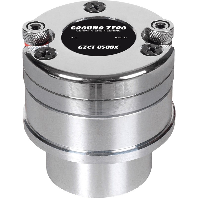 Zážitok skutočnej koncertnej atmosféry alebo klubového pocitu si žiada profesionálne vysoké úrovne SPL. To si však vyžaduje veľmi špeciálne a výkonné reproduktory a tiež zosilňovače. Pre vysokofrekvenčnú a strednú reprodukciu ponúka rad COMPETITION sériu vysoko účinných výškových reproduktorov s kompresiou vo vysokom dosahu a rôzne stredové reproduktory. Vývojové oddelenie Ground Zero nerobí kompromisy. Z tohto dôvodu sú produkty radu COMPETITION tou správnou voľbou pre náročných zákazníkov s vysokými požiadavkami na úroveň SPL. Ground Zero GZCT 0500X je 25 mm vysoko výkonný kompresný výškový reproduktor s hliníkovou kalotou a 30° rozptylom.