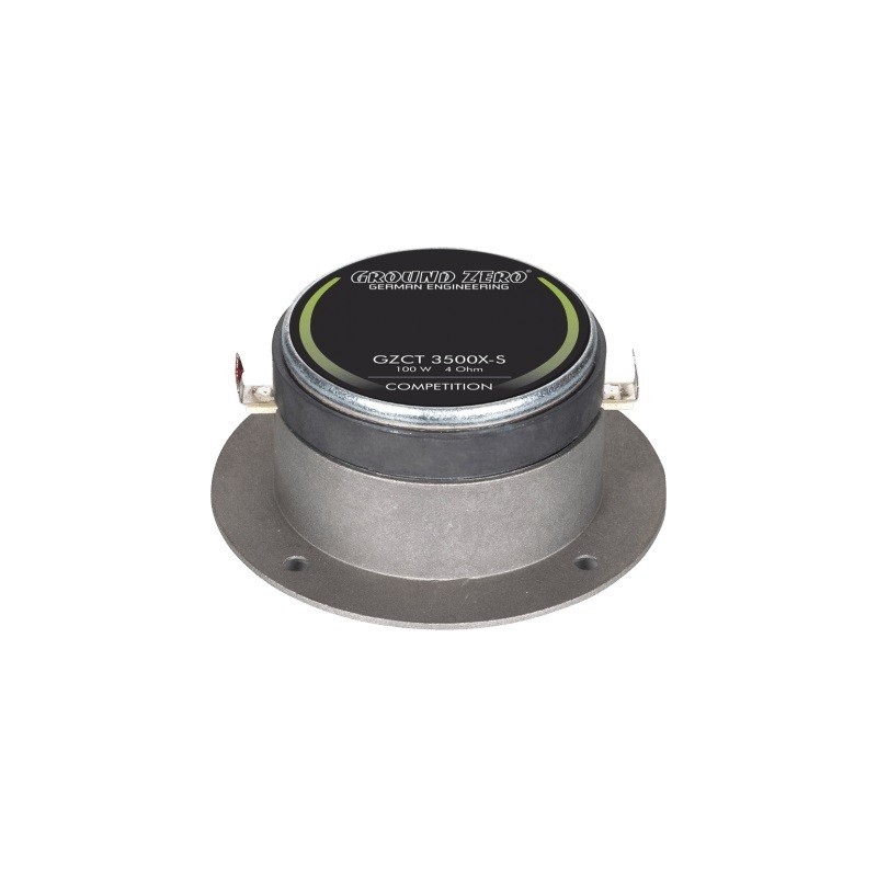Zážitok skutočnej koncertnej atmosféry alebo klubového pocitu si žiada profesionálne vysoké úrovne SPL. To si však vyžaduje veľmi špeciálne a výkonné reproduktory a tiež zosilňovače. Pre vysokofrekvenčnú a strednú reprodukciu ponúka rad COMPETITION sériu vysoko účinných výškových reproduktorov s kompresiou vo vysokom dosahu a rôzne stredové reproduktory. Vývojové oddelenie Ground Zero nerobí kompromisy. Z tohto dôvodu sú produkty radu COMPETITION tou správnou voľbou pre náročných zákazníkov s vysokými požiadavkami na úroveň SPL. Ground Zero GZCT 3500X-S je 25 mm vysoko výkonný kompresný výškový reproduktor s hliníkovou kalotou a 40° rozptylom.