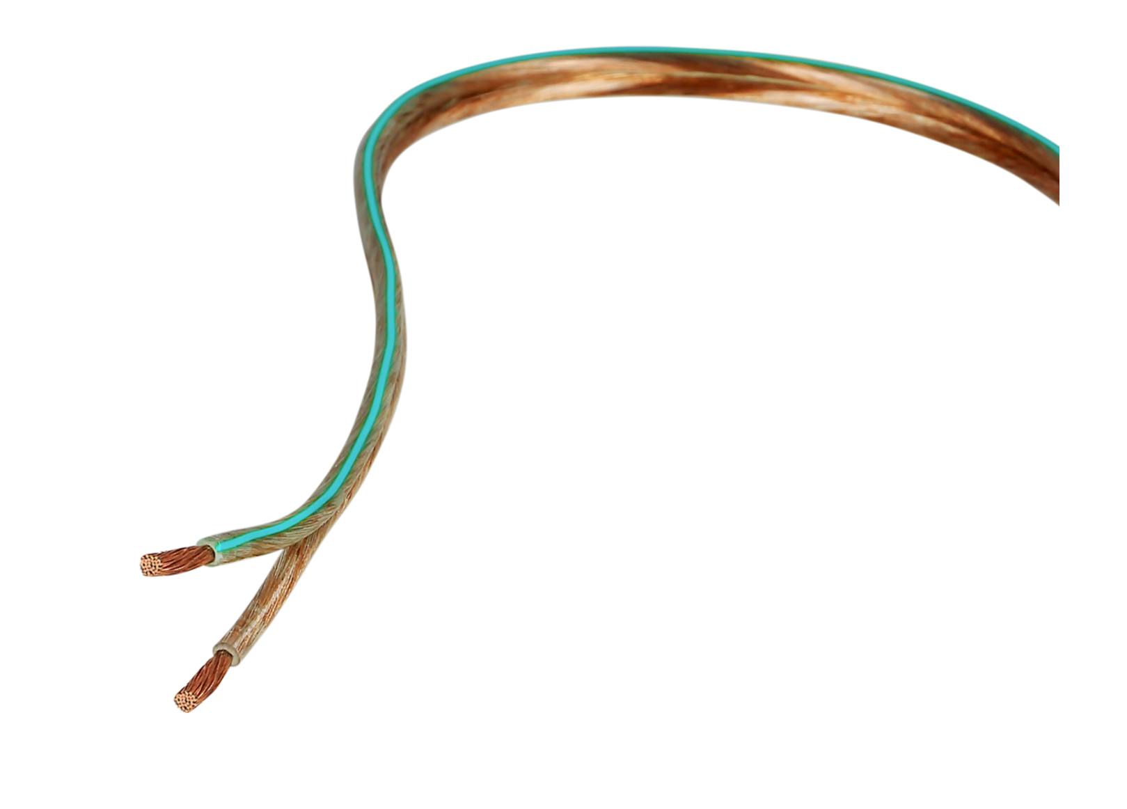 medený reproduktorový kábel, prierez 2 x 2,5 mm², priehľadná izolácia