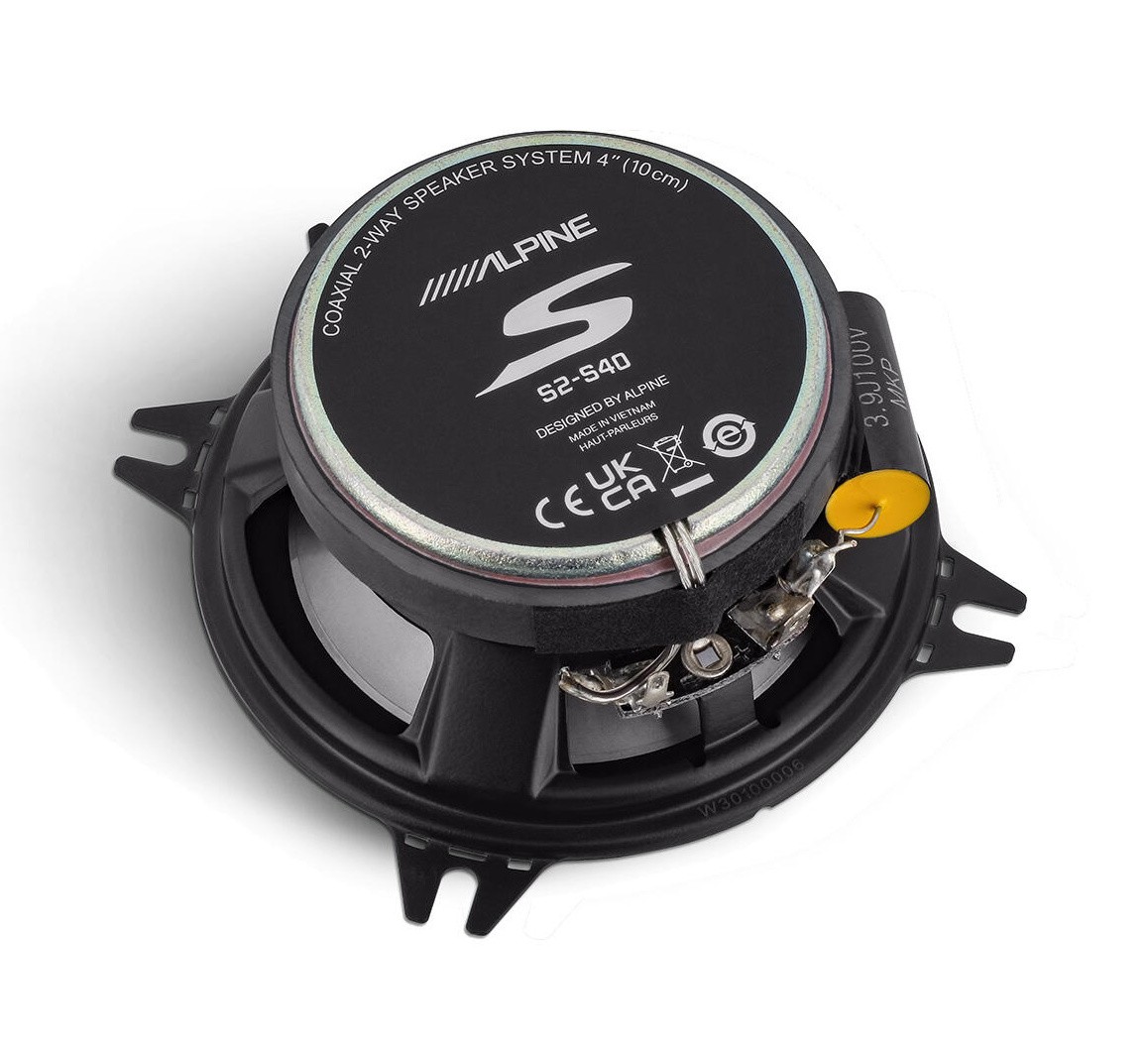 Koaxiálne reproduktory S2-S40 novej generácie radu S s novým dizajnom a certifikáciou Hi-Res Audio predstavujú nový štandard v oblasti základného zvukového výkonu. Do týchto reproduktorov sme vložili špičkové schopnosti vďaka použitiu vysoko účinných materiálov a patentovaných konštrukčných prvkov. Ľahká membrána woofera, vyrobená z kombinácie materiálov polypropylénu, sklenených vlákien a sľudy, podáva základný zvuk s vysokým výkonom / nízkym skreslením, ktorý je vyžadovaný pre výkon High-Res Audio. Reproduktory Alpine radu S majú zväčšené rozmery magnetov pre väčší výkon a najlepší výkon v stredobasovom pásme vo svojej kategórii. Obklopenie woofera High Amplitude Multi-Roll (HAMR) prináša to najlepšie z basov tým, že umožňuje maximálny pohyb kužeľa. Výškový reproduktor s kopulkou s priemerom 2 cm (3/4") vám naservíruje všetky detaily vysokých frekvencií, ktoré vám pri továrenských reproduktoroch chýbali. Všetky reproduktory radu S majú široký rozsah montáže do vozidla a obsahujú niekoľko adaptérov a dištančných podložiek. Vďaka použitiu in- line crossoverov je možné tieto reproduktory ľahko a rýchlo nainštalovať aj v domácich podmienkach.