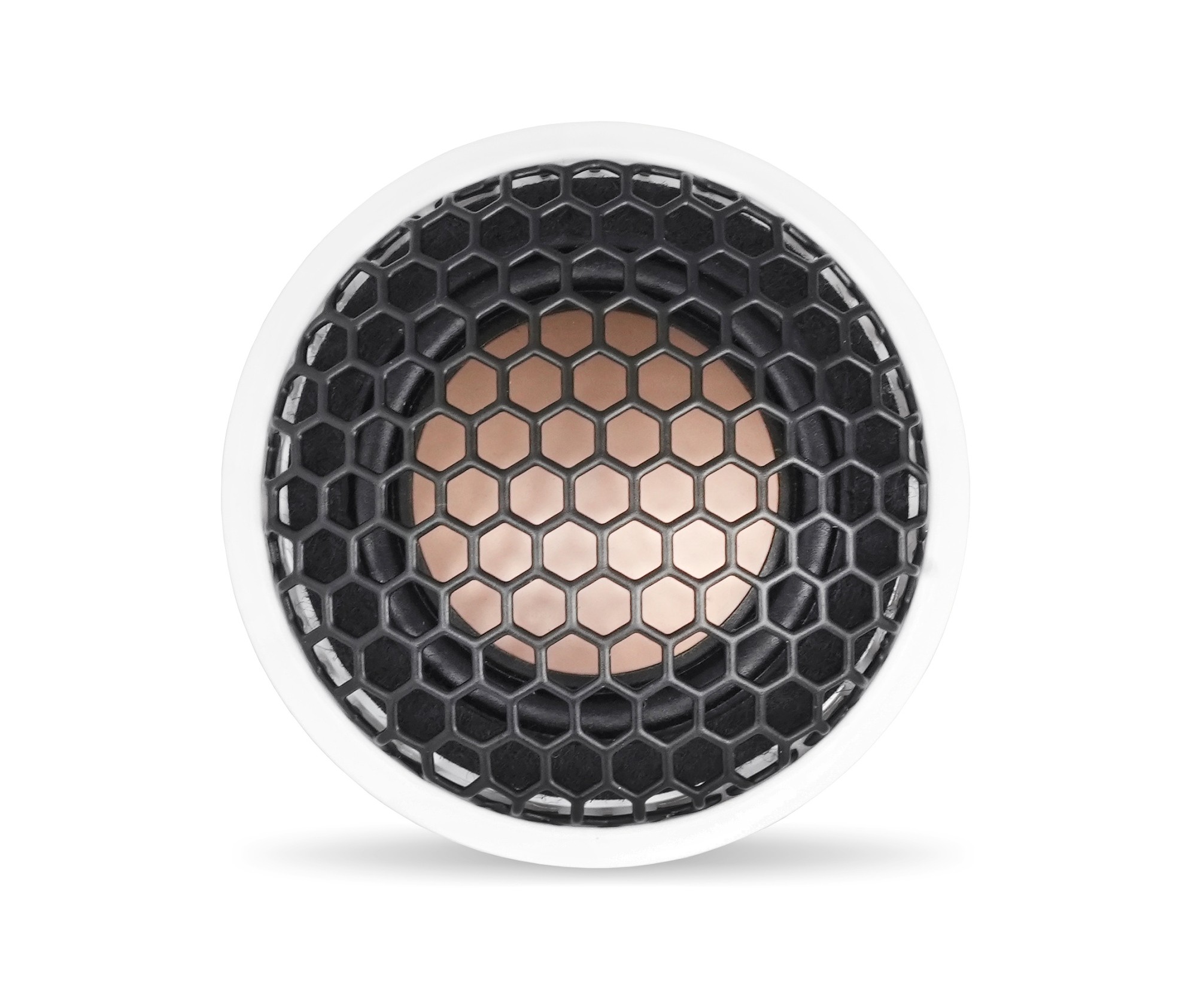 Membrána výškového reproduktora Audible Physics RAM 1 SR je rovnako ako v prípade stredobasového reproduktora vyrobená z patentovaného materiálu Matrix Alloy Dome. Ide o unikátnu zliatinu horčíka a hliníka, ktorá v prípade výškových reproduktorov ponúka hneď niekoľko výhod na čele s výnimočnými vysokofrekvenčnými detailmi, analyticky presným zvukom a extrémne hlbokou zvukovou scénou. Táto zliatinová kalota zaujme aj pozoruhodnou linearitou krivky frekvenčnej odozvy aj takmer dokonalou neutralitou. Horčík má navyše skvelé tlmiace vlastnosti a spolu s veľmi tuhým hliníkom v zliatine výrazne znižujú skreslenie a mechanickú deformáciu. Vysoko kvalitný neodymový magnet s priemerom 24 mm je optimalizovaný na dosiahnutie lepšej účinnosti a zlepšenie linearity pre zaistenie perfektnej správy napájania a zvýšenie šírky pásma a účinnosti. Dizajn zliatinovej Matrix kaloty v medennej farbe nadväzuje na vrchlík membrány stredobasu a opticky tak tvorí dokonale zladený systém a to nielen po zvukovej stránke. Krásny dizajnový domček výškového reproduktora v bielej farbe s robustnou hexagónovou mriežkou je navrhnutý na zapustenie, v balení však nájdete aj biele domčeky pre povrchovú inštaláciu.