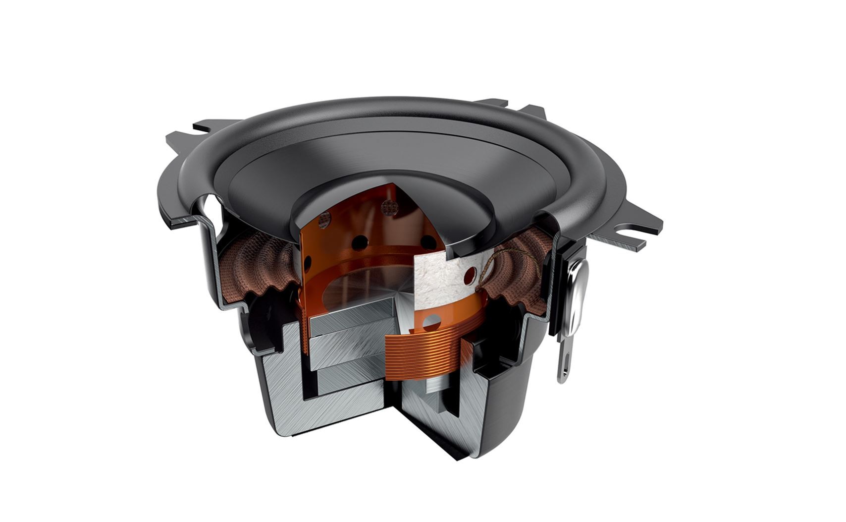 | Typy reproduktorov Koaxiálne reproduktory: Koaxiálne reproduktory sa vyznačujú konštrukciou tzv. Všetko v jednom. Výškový a stredobasový reproduktor sú v jednom koši. Výhodou je jednoduchšia montáž, ale vďaka spojeniu resp. blízkosti pásiem v jednom reproduktore, sa zvyčajne zníži kvalita zvuku. Spravidla uprostred stredobasového reproduktora, je výškový reproduktor, ktorého kmitacia cievka pracuje v druhej vzduchovej medzere spoločného magnatického obvodu. Trojpásmový koaxiálny reproduktor sa skladá zo stredobasového reproduktora, v predu na osobitnom nosníka je stredový reproduktor a samostatný výškový. Komponentné reproduktory: Komponentné reproduktory sa vyznačujú rozdelením na jednotlivé frekvenčné pásma, výškové + stredobasové + popr. basové pásmo. Jednotlivé reproduktory sa dajú umiestniť úplne oddelene, čo má za výsledok lepší zvukový aj akustický prejav. V drvivej väčšine prípadov komponentných reproduktorov je dodávaná aj externá výhybka, ktorá rozdeľuje výškové, stredové / stredobasové a u třípásma aj basové pásmo popr. umožňuje nastavenie decibelovej úrovne u výškového reproduktoru (napr. +2 dB, 0 dB, -2 dB), strmosti (napr. 6dB / okt. 12dB / okt.) či aktívne alebo bi-amp zapojenia. | Stredové |
