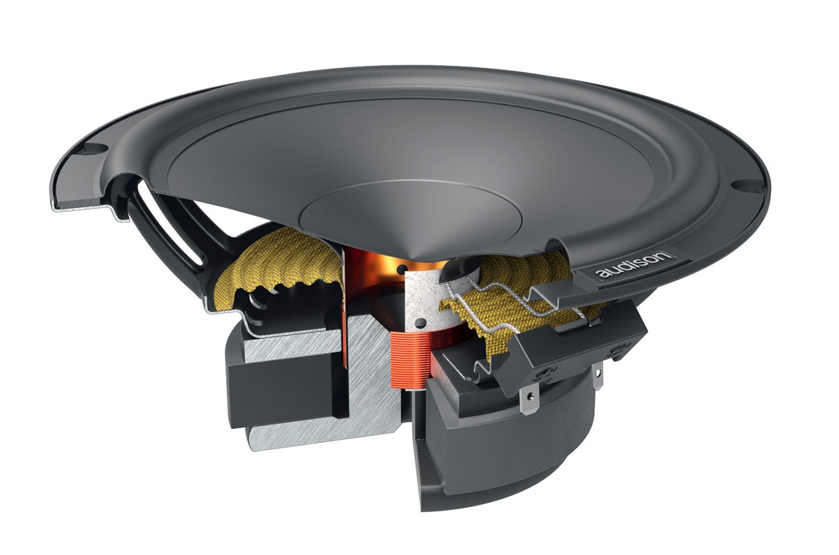 - Stredobasový reproduktor AP 6.5P s 32 mm medenou cievkou a vodeodolnou papierovou membránou s profilom vyvinutým pomocou simulačnej technológie FEM (Finite Element Method).