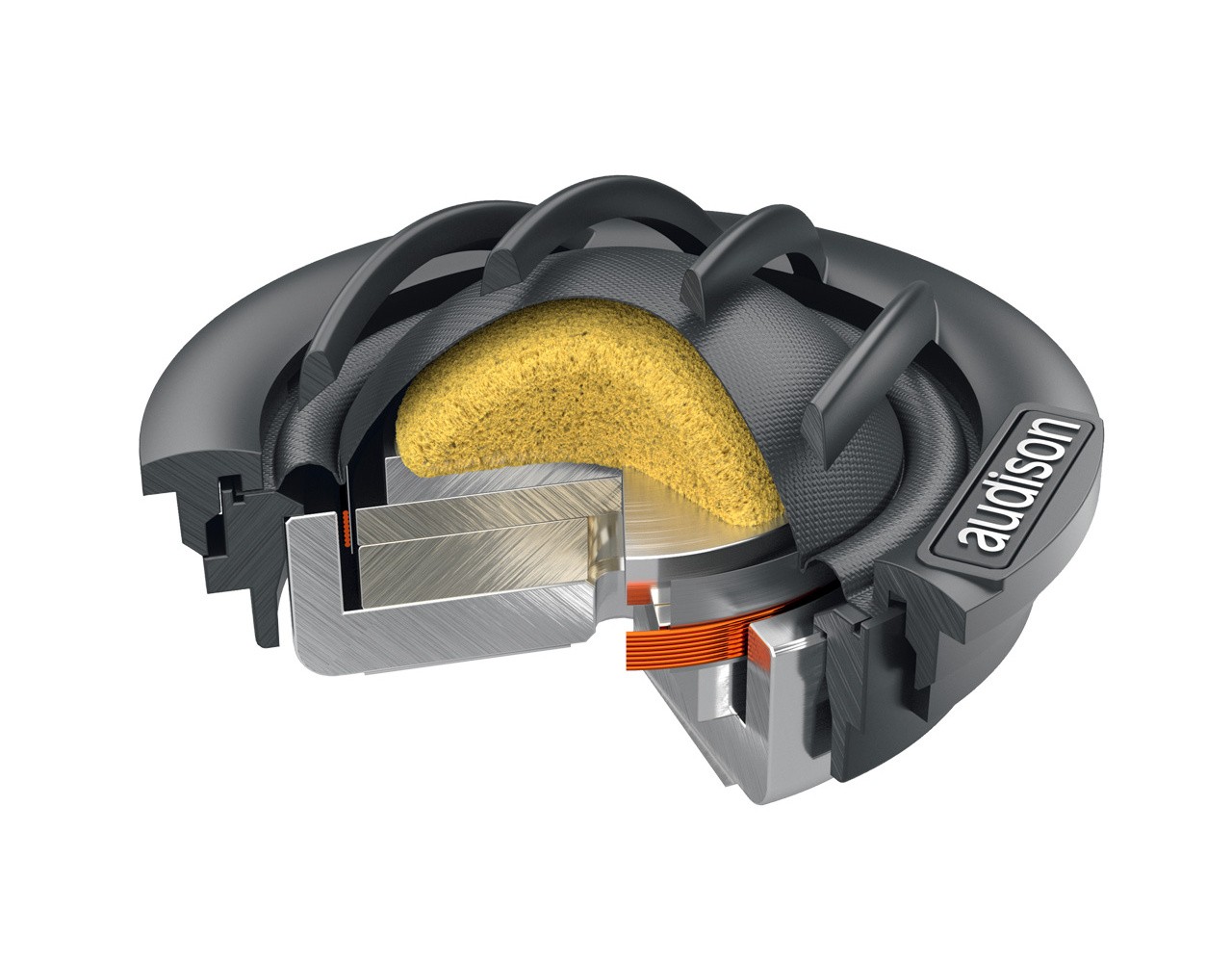- Výškový reproduktor Audison AP 1P s membránou s priemerom 26 mm poskytuje maximálnu účinnosť a zníženú rezonančnú frekvenciu.