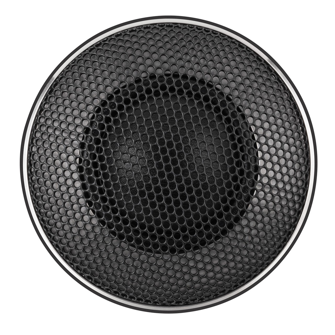 - Vrátane ochranných mriežok v dvoch exkluzívnych, vymeniteľných designoch – optimalizovaných pre dokonalú reprodukciu zvuku.