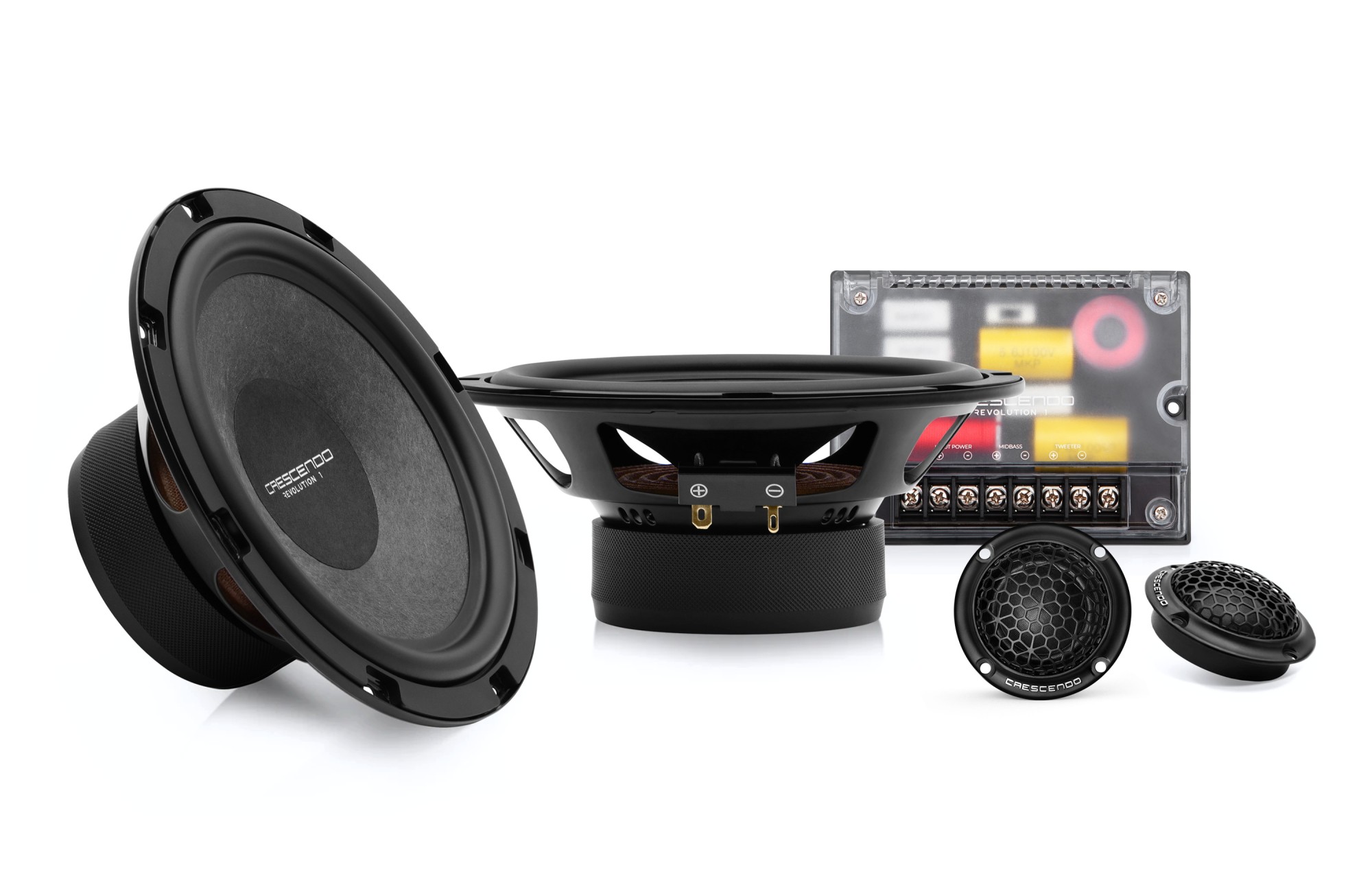 Zoznámte sa s Crescendo Revolution 1S2, komponentným systémom s pôsobivou kvalitou zvuku, ktorý vás uvedie do sveta cenovo dostupnej sound quality. Revolution 1S2 prekvapí vyváženou tonalitou a vyspelou reprodukciou zvuku, k čomu prispievajú starostlivo vybrané materiály a kvalitné komponenty spolu s vynikajúcim spracovaním. Súčasťou systému Revolution 1S2 je stredový reproduktor s papierovou membránou zabezpečujúcou vernú reprodukciu zvuku a presne definované nízke frekvencie. Výškový reproduktor s hodvábnou kalotou s priemerom 28 mm umožňuje reprodukciu detailných vysokých frekvencií s príkladnou čistotou. Na mieru navrhnutá mriežka s originálnym dizajnom zabezpečuje optimálny priechod zvuku. Integrované hliníkové šasi výškového reproduktora nielenže umocňuje krásny dizajn, ale zabezpečuje aj minimálne skreslenie a vibrácie. Medzi výhody systému Revolution 1S2 patrí aj vysoká reálna citlivosť a optimálne naladený výkon, vďaka čomu je možné reproduktory bez obáv pripojiť aj na továrenské systémy. Súčasťou balenia je aj vysokokvalitná frekvenčná výhybka s možnosťou nastavenia úrovne výškového reproduktora a dizajnové skrutky na montáž reproduktorov.