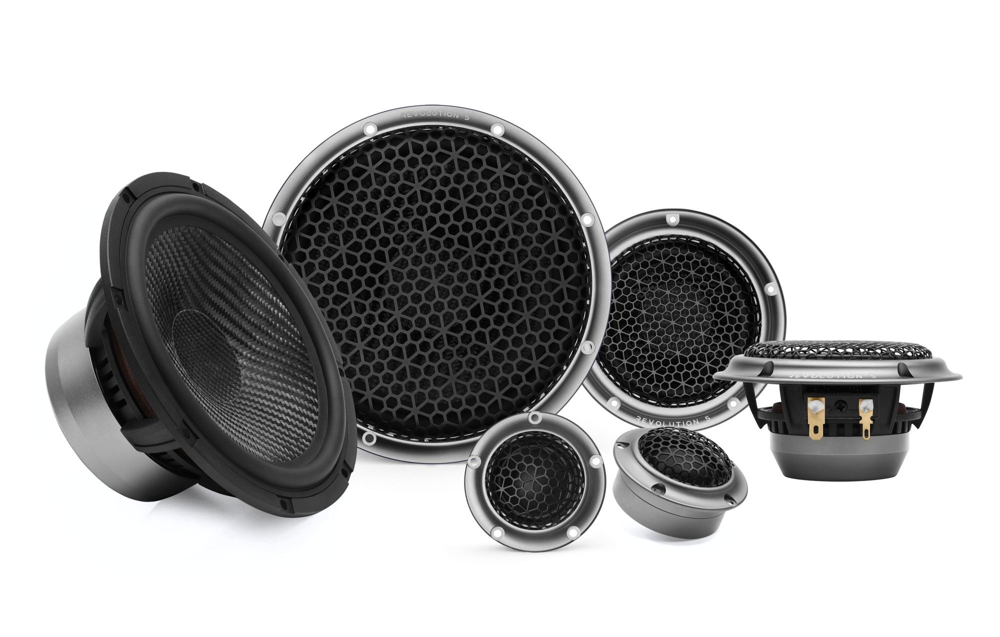 Výškový reproduktor radu Revolution 5 s hodvábnou kalotou o priemere 28 mm umožňuje reprodukciu vysokých frekvencií s excelentnou čistotou a vynikajúcim detailom. Hodváb je známy svojím jemným a prirodzeným zvukom, širokou frekvenčnou odozvou a tiež veľmi nízkou hmotnosťou, čo prispieva k vysokej citlivosti a rýchlej reakcii na zvukové signály. Integrované hliníkové šasi výškového reproduktora v tmavo šedej, matnej povrchovej úprave nielenže umocňuje krásny dizajn radu Revolution 5, ale zaisťuje aj minimálne skreslenie a vibrácie. Na mieru navrhnutá hliníková mriežka pomáha optimálnemu priechodu zvuku a minimalizuje tzv. "horn effect". Tento akustický jav sa týka tradičných mriežok reproduktorov s pravidelným dizajnom, kedy mriežka funguje podobne ako zvukovod a smeruje zvukové vlny určitým smerom, navyše i môže zvýrazňovať určité frekvencie. Neodymový magnet zaisťuje vysoký magnetický výkon, rýchlu odozvu membrány, optimálnu kontrolu a nízke skreslenie. Postriebrený medený vodič pre zapojenie výškového reproduktora prispieva k čistote zvuku.3,5" stredový reproduktor