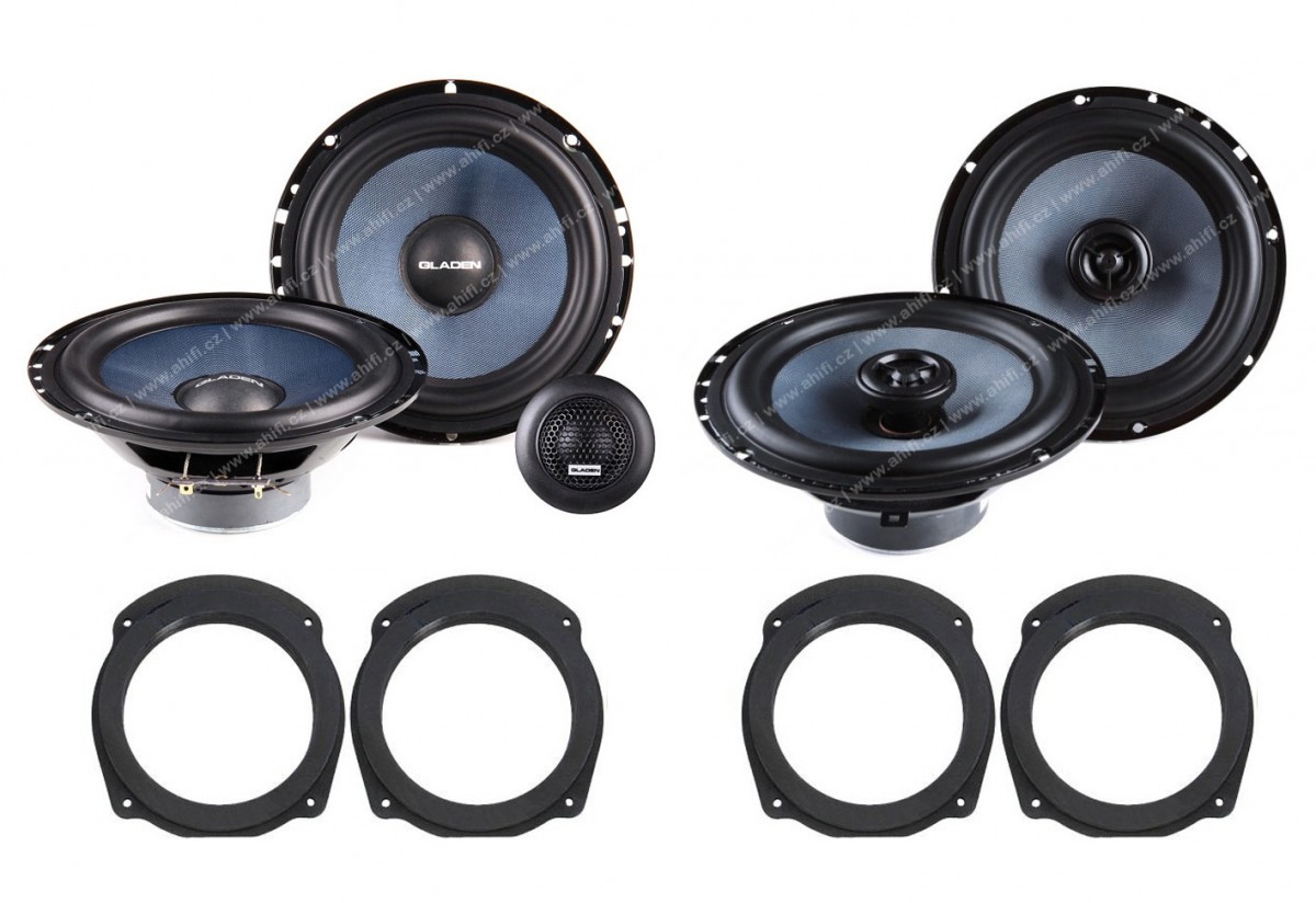 - Koaxiálne reproduktory Gladen Alpha 165 C do zadných dverí.