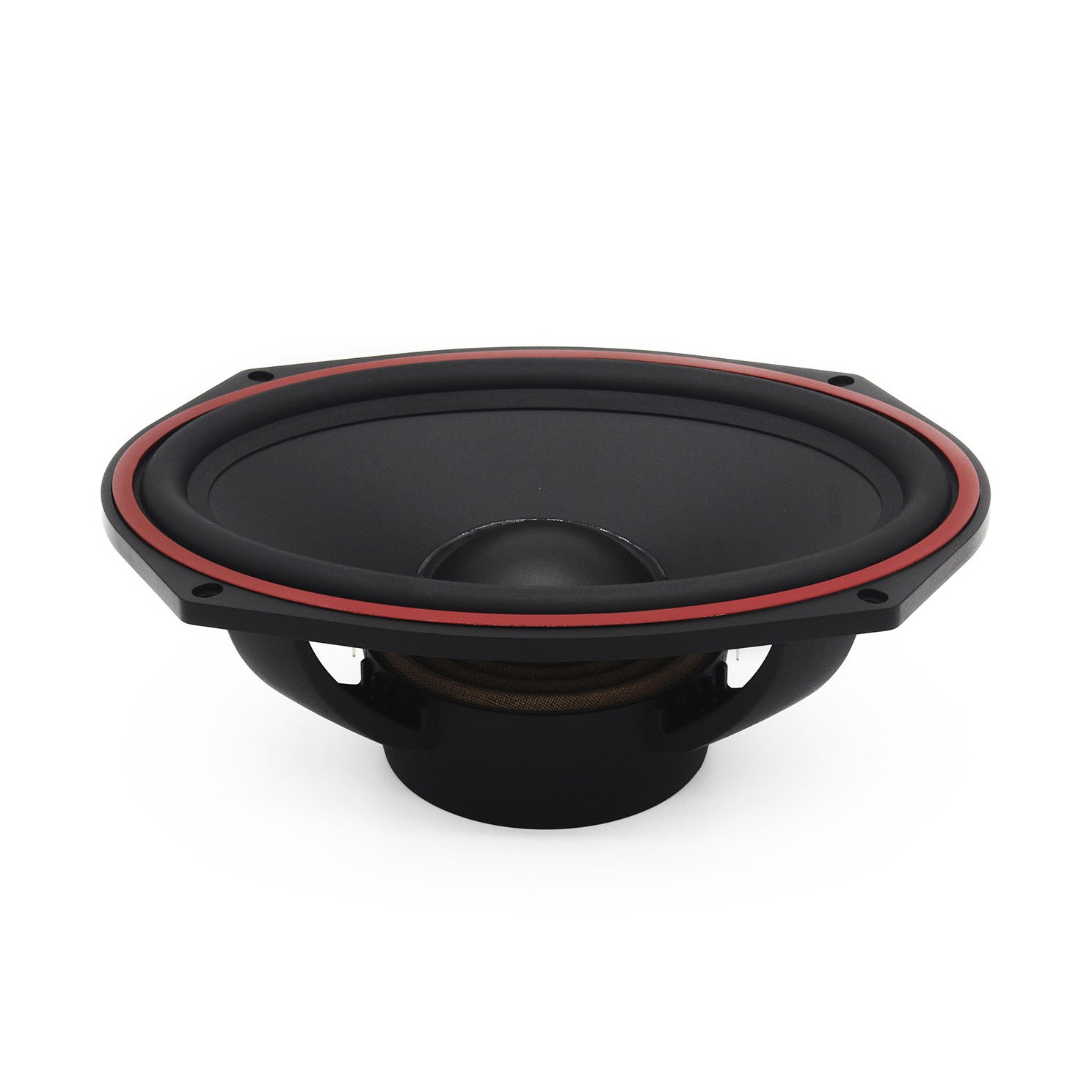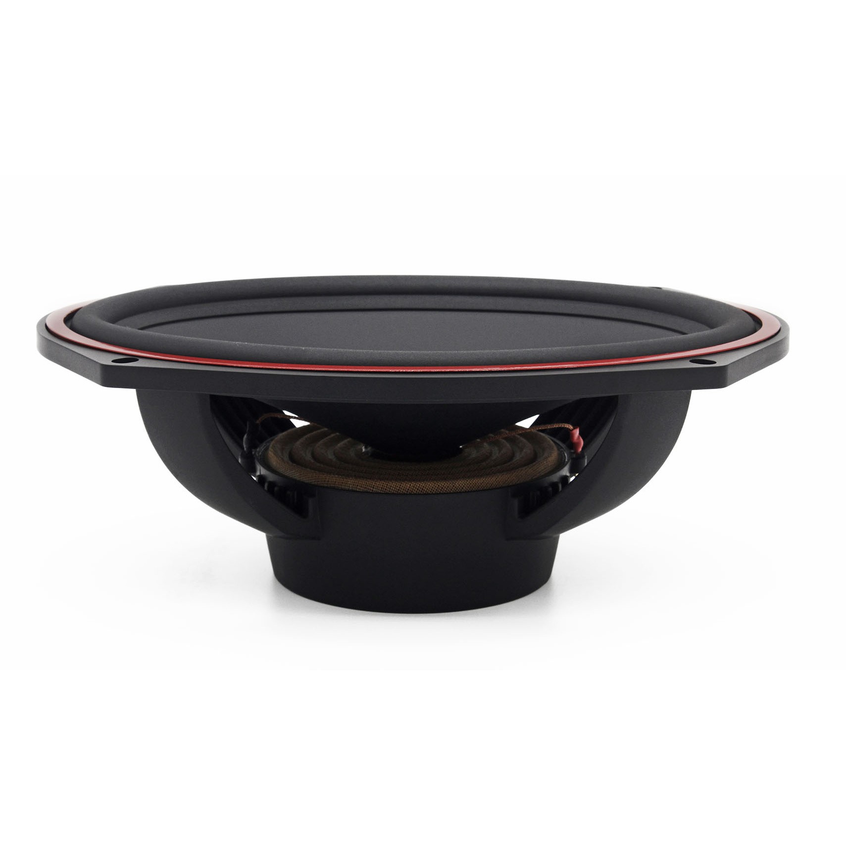| Typy reproduktorov Koaxiálne reproduktory: Koaxiálne reproduktory sa vyznačujú konštrukciou tzv. Všetko v jednom. Výškový a stredobasový reproduktor sú v jednom koši. Výhodou je jednoduchšia montáž, ale vďaka spojeniu resp. blízkosti pásiem v jednom reproduktore, sa zvyčajne zníži kvalita zvuku. Spravidla uprostred stredobasového reproduktora, je výškový reproduktor, ktorého kmitacia cievka pracuje v druhej vzduchovej medzere spoločného magnatického obvodu. Trojpásmový koaxiálny reproduktor sa skladá zo stredobasového reproduktora, v predu na osobitnom nosníka je stredový reproduktor a samostatný výškový. Komponentné reproduktory: Komponentné reproduktory sa vyznačujú rozdelením na jednotlivé frekvenčné pásma, výškové + stredobasové + popr. basové pásmo. Jednotlivé reproduktory sa dajú umiestniť úplne oddelene, čo má za výsledok lepší zvukový aj akustický prejav. V drvivej väčšine prípadov komponentných reproduktorov je dodávaná aj externá výhybka, ktorá rozdeľuje výškové, stredové / stredobasové a u třípásma aj basové pásmo popr. umožňuje nastavenie decibelovej úrovne u výškového reproduktoru (napr. +2 dB, 0 dB, -2 dB), strmosti (napr. 6dB / okt. 12dB / okt.) či aktívne alebo bi-amp zapojenia. | Stredobasové |