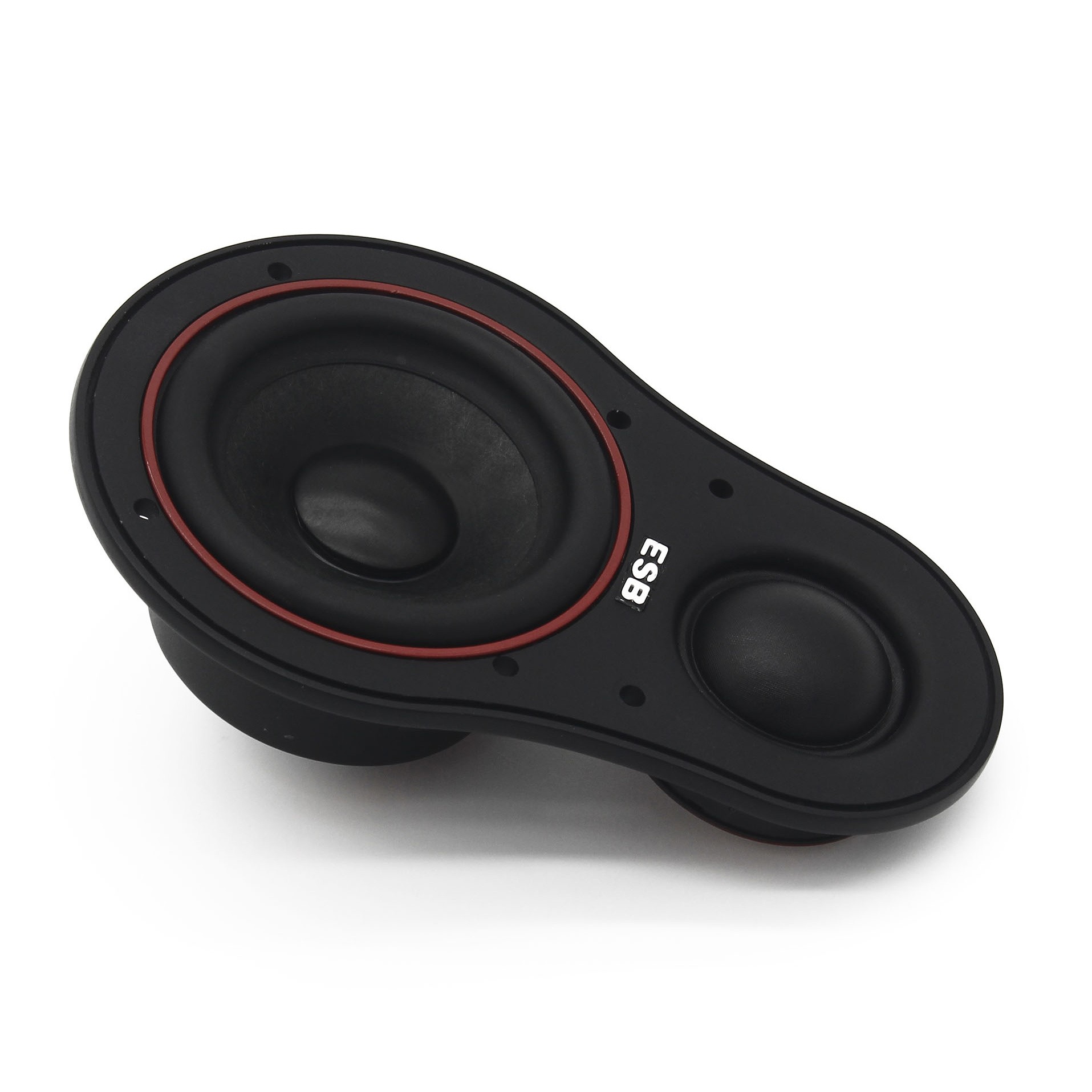 Je všeobecne známe, že membrány vyrobené z papiera sú najlepším spojením ľahkosti, tuhosti a schopnosti kužeľa tlmiť akékoľvek nežiaduce vibrácie a skreslenia. Papier je obľúbeným materiálom pre svoje vynikajúce zvukové vlastnosti a je vodeodolný vďaka polyméru vyvinutému exkluzívne u ESB. Ošetrenie nemení vzhľad a parametre reproduktora ako lesklé polyméry, ktoré dodávajú samotnej membráne nezanedbateľné množstvo hmoty a výrazne upravujú zvukový výsledok. Úprava ESB chráni membránu pred vlhkosťou a kvapkajúcou vodou a tiež pred náhodným postriekaním prednej strany membrány. Perbunanová guma závesu zaisťuje dvojakú funkciu vysokého tlmenia a skvelej priečnej stability. To znamená, že membrána je "nútená" iba k vertikálnemu pohybu, čím sú eliminované priečne pohyby, ktoré by mohli spôsobiť kontakt s cievkou a magnetom. 25 mm kmitacia cievka woofera využíva hliníkový nosič a vinutie dvojvrstvovou technológiou medeného drôtu s hliníkovým jadrom. Kôš z ABS plastu vystužený skleným vláknom bol navrhnutý tak, aby získal maximálnu torznú tuhosť, ale zároveň ponúkal minimálny odpor priechodu vzduchu vytláčaného membránou z jej zadnej strany. To je dobre viditeľné z početných výstuh a rebier. Kôš a jeho tuhosť zohrávajú zásadnú úlohu pri vyrovnávaní cievky v magnetickom obvode. Nemenej dôležitým faktorom je tlmenie tohto komponentu, pretože kovové koše majú často tendenciu rezonovať a to výrazne mení výsledný zvukový výsledok reproduktora. Použitý materiál, okrem toho, že nie je tak citlivý na tepelné zmeny, je nehorľavý a predovšetkým úplne odolný voči rezonanciám. Kôš z ABS plastu navyše umožňuje lepší krútiaci moment upínacej sily ako typické lisované oceľové rámy a zaisťuje, že kmitacia cievka zostane dobre vycentrovaná v magnetickom poli. Reproduktory sú vybavené motorom s feritovým magnetom triedy Y-35 s výrazne vyšším výkonom ako klasické "štandardné" feritové magnety, čo zaisťuje ľahšie riadenie výkonu aplikovaného na reproduktor a tiež jeho vynikajúcu účinnosť. Kovové časti motora využívajú nízkouhlíkovú oceľ a boli navrhnuté tak, aby bola dosiahnutá maximálna magnetická saturácia. To zaručuje najlepšie elektroakustické parametre, pretože vírivé prúdy vznikajúce pohybom membrány sú z veľkej časti potlačené.