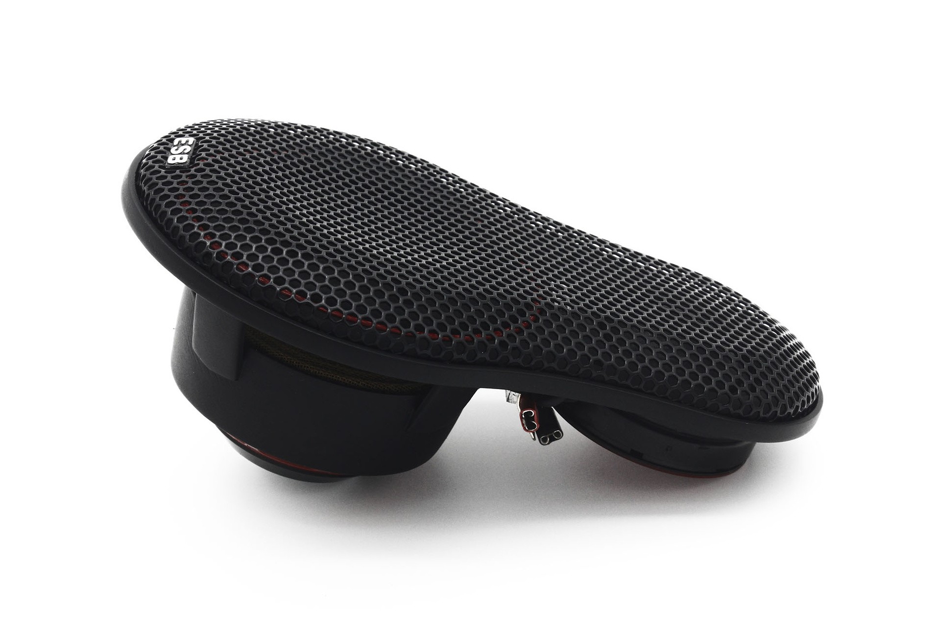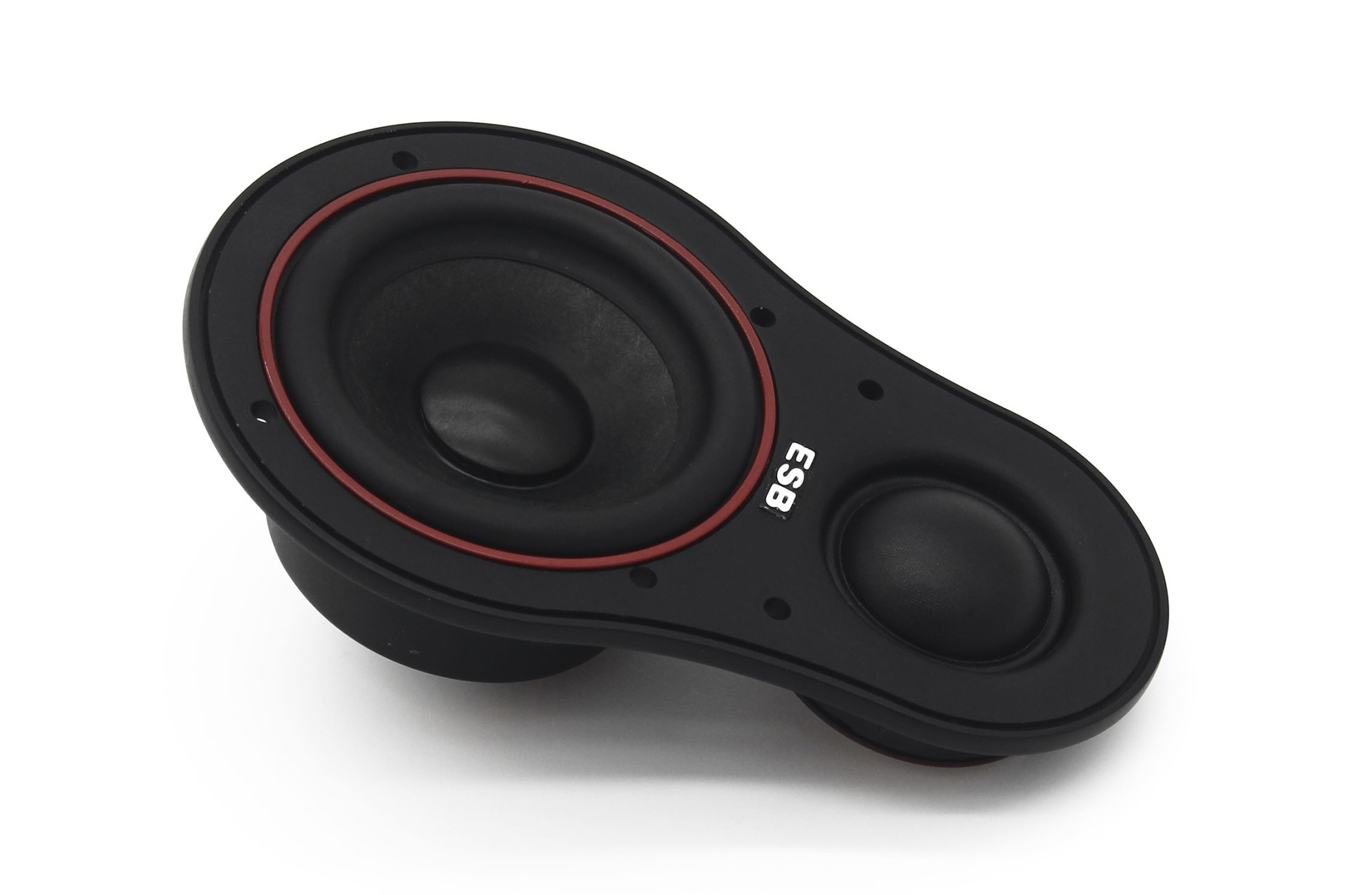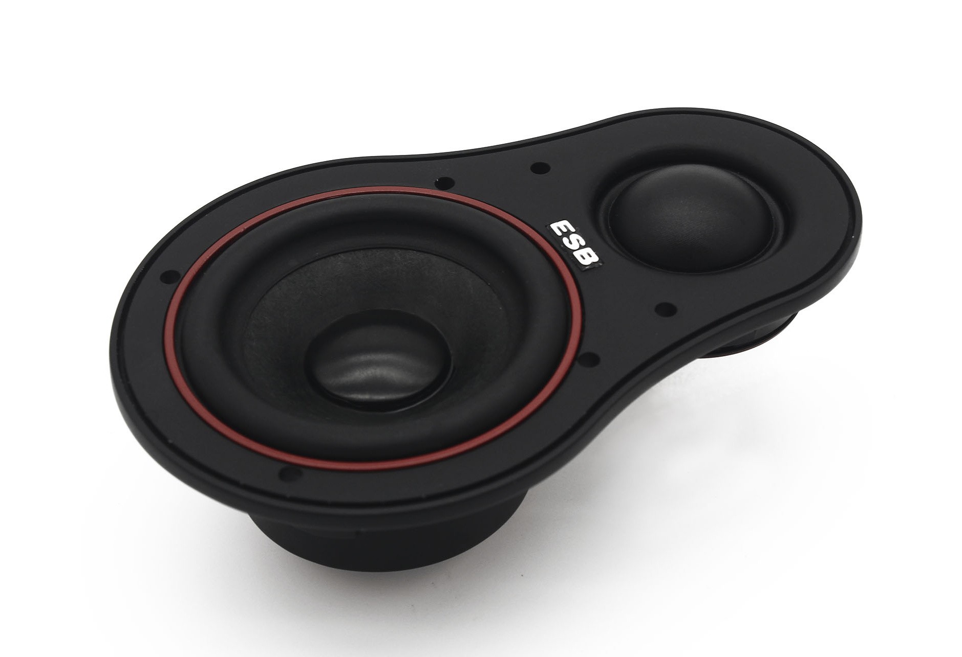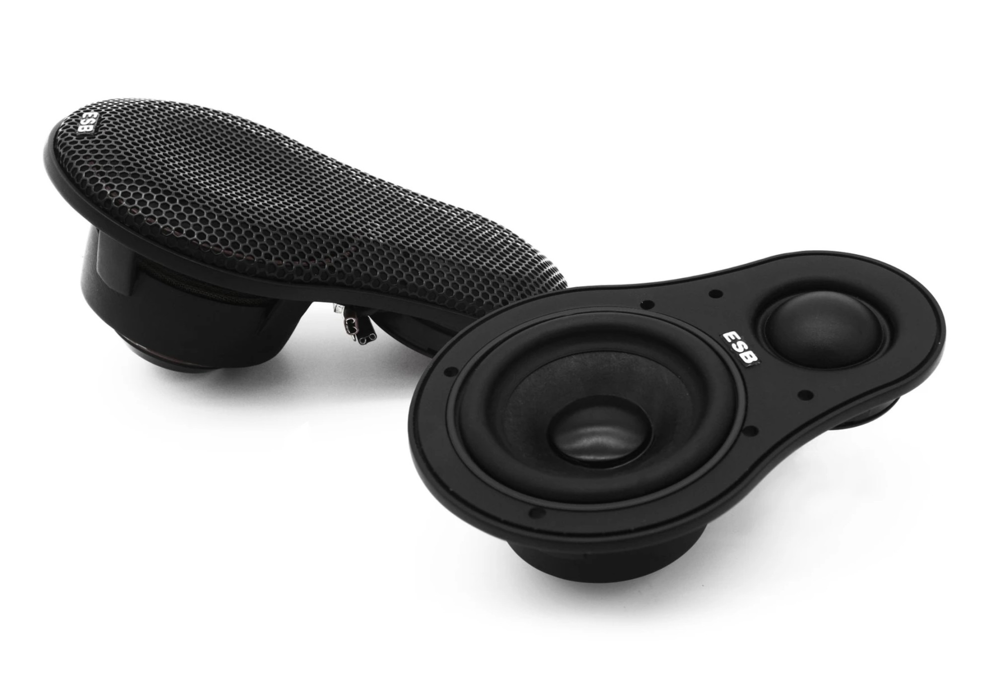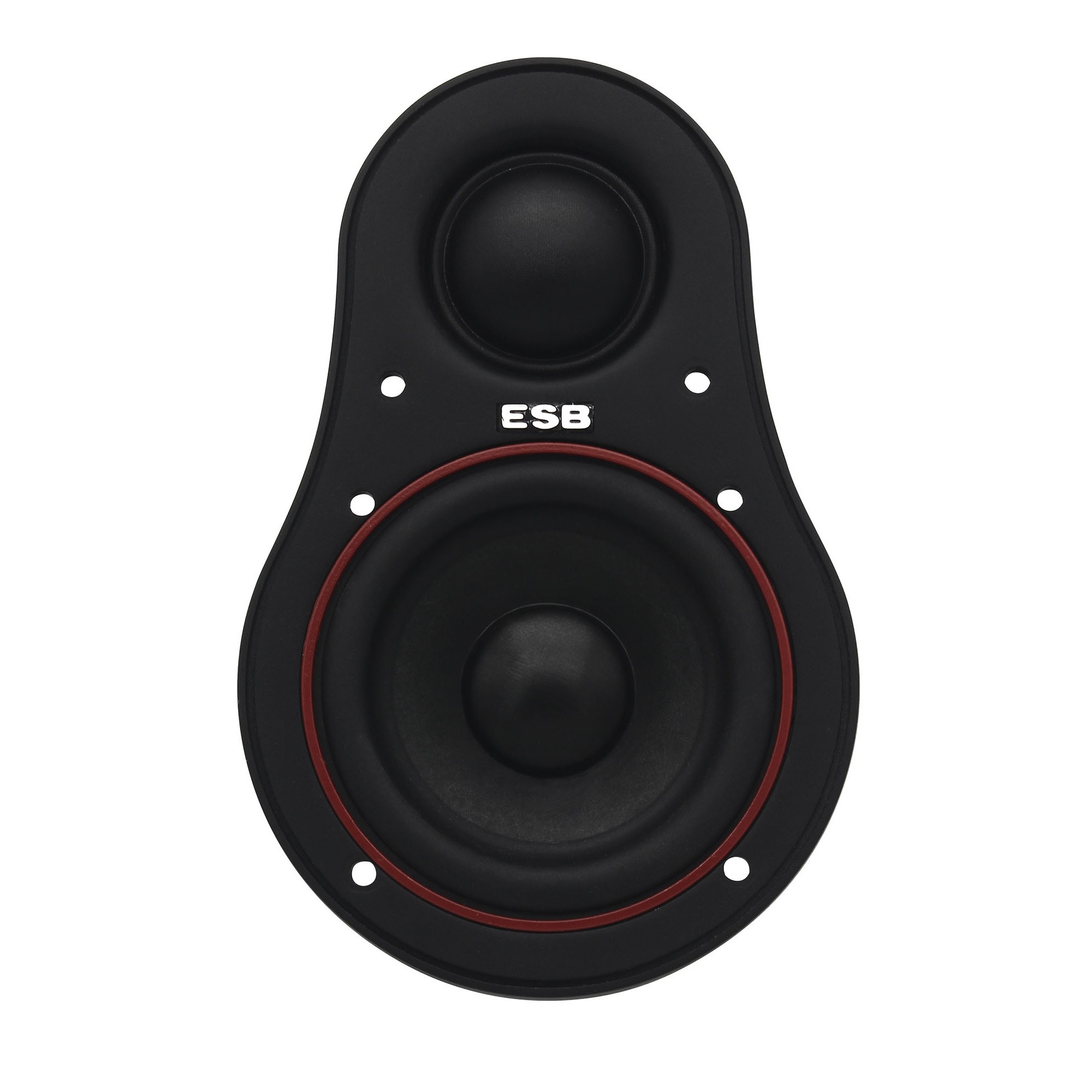 Je všeobecne známe, že membrány vyrobené z papiera sú najlepšou kombináciou ľahkosti, tuhosti a schopnosti kužeľa tlmiť akékoľvek nežiaduce vibrácie a skreslenie. Papier je materiálom, ktorý bol zvolený pre svoje vynikajúce zvukové vlastnosti a je vodotesný vďaka polyméru vyvinutému výhradne v spoločnosti ESB. Táto úprava nemení vzhľad a výkon reproduktora ako lesklé polyméry, ktoré pridávajú značnú hmotnosť samotnej membráne a výrazne modifikujú zvukový výsledok. Úprava ESB chráni membránu pred vlhkosťou a kvapkajúcou vodou, ako aj pred náhodným postriekaním prednej časti membrány. Perbunanová závesná guma zabezpečuje dvojitú funkciu vysokého tlmenia a vynikajúcej bočnej stability.To znamená, že membrána je „nútená“ pohybovať sa len vertikálne, čím sa eliminujú bočné pohyby, ktoré by mohli spôsobiť kontakt s cievkou a magnetom.25 mm kmitacia cievka basového reproduktora využíva hliníkový nosič a navíja sa technológiou dvojvrstvového medeného drôtu s hliníkovým jadrom. Kôš z ABS plastu vystuženého sklenými vláknami bol navrhnutý tak, aby získal maximálnu torznú tuhosť a zároveň kládol minimálny odpor pri prechode vzduchu, ktorý je tlačený cez membránu z jej zadnej strany. To je jasne viditeľné z početných výstuh a rebier. Kôš a jeho tuhosť zohrávajú dôležitú úlohu pri vyvažovaní cievky v magnetickom obvode. Rovnako dôležitým faktorom je tlmenie tohto komponentu, pretože kovové koše majú často tendenciu rezonovať, čo výrazne mení konečný zvukový výsledok reproduktora. Použitý materiál je okrem toho, že je menej citlivý na tepelné zmeny, nehorľavý a predovšetkým úplne odolný voči rezonancii. Okrem toho plastový kôš ABS umožňuje lepší upínací moment ako typické lisované oceľové rámy a zabezpečuje, že kmitacia cievka zostane dobre vycentrovaná v magnetickom poli. Reproduktory sú vybavené motorom s neodymovým magnetom triedy N42, ktorý zabezpečuje jednoduchšiu kontrolu výkonu privádzaného do reproduktora, ako aj jeho vynikajúcu účinnosť. Kovové časti motora využívajú nízkouhlíkovú oceľ a boli navrhnuté tak, aby sa dosiahlo maximálne magnetické nasýtenie. Tým sa zabezpečuje najlepší elektroakustický výkon, pretože vírivé prúdy vznikajúce pohybom membrány sú do značnej miery potlačené.