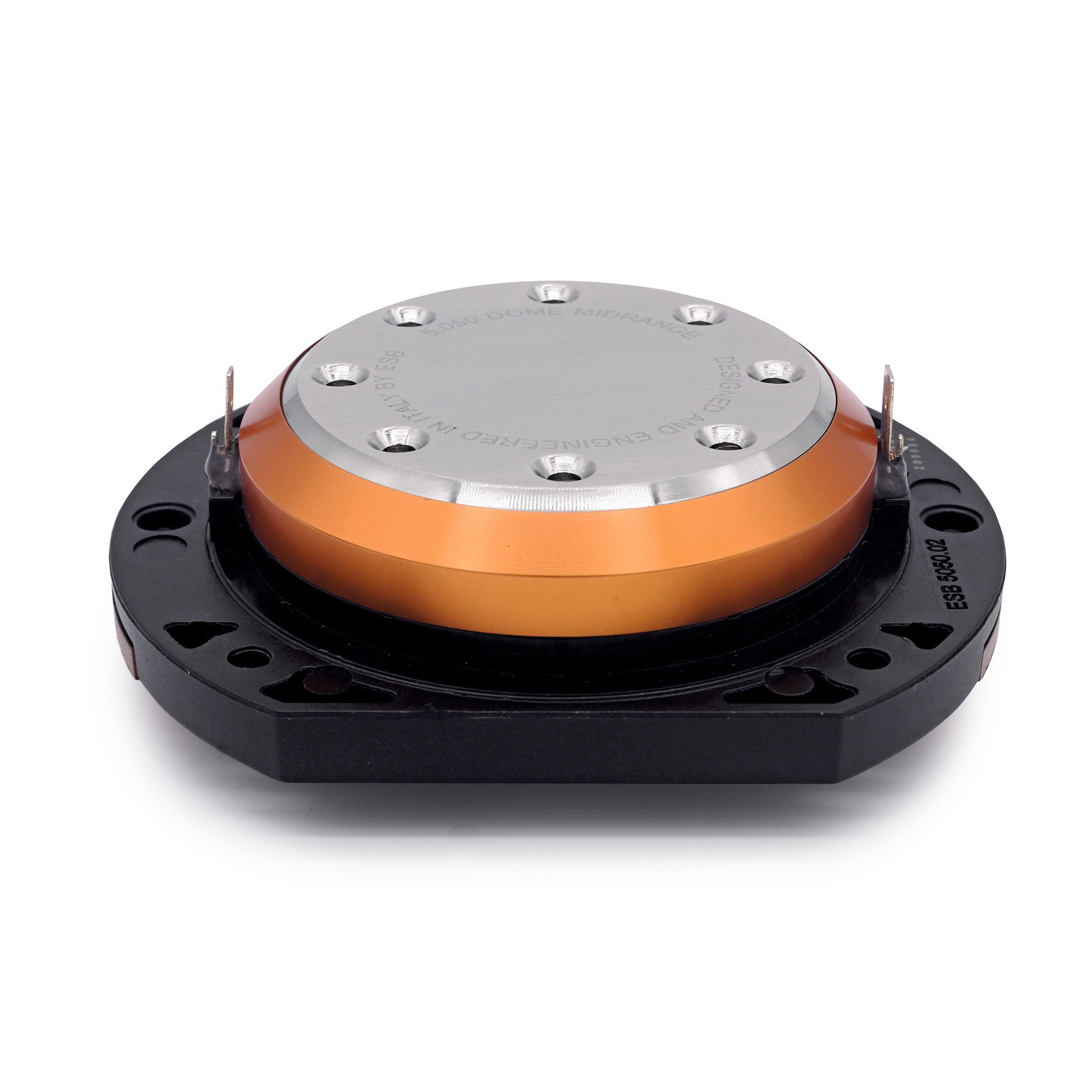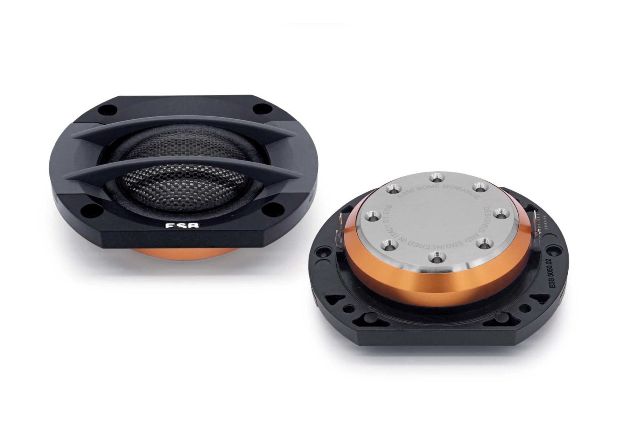 Membrána výškových a stredových reproduktorov je rovnako ako u tých stredobasových vyrobená z kompozitného materiálu PMC, ktorý je navyše vystužený karbónovými vláknami. To zaisťuje vynikajúcu tuhosť a zároveň veľmi nízku hmotnosť membrány. Výškový reproduktor využíva veľmi veľký, odvetrávaný neodymový magnet, ktorý je optimalizovaný pomocou počítačových simulácií (FEA) pre dosiahnutie vyššej účinnosti a zlepšenie linearity pozdĺž všetkých výchyliek kmitacej cievky. Neodymový magnet najvyššej kvality znižuje magnetické straty pri zvýšenej teplote a koncentruje viac energie do malého priestoru. Tiež kôš výškového a stredového reproduktora zaujme svojim krásnym dizajnom a mimochodom veľkou hmotnosťou. Je to dané použitím ušľachtilých kovových materiálov, ktoré sú vyrábané CNC procesom. Veľká pozornosť bola venovaná axiálnej a radiálnej ventilácii pohyblivej cievky, aby bola zaistená manipulácia s vysokým výkonom, znížené skreslenie a zvýšená životnosť. Axiálne ventilačné otvory znižujú kompresiu vzduchu v zadnej časti membrány s výrazne zníženým skreslením a predĺženou odozvou do nižších frekvencií. Hliníková kmitacia cievka s rozmerom 28 mm pri výškovom reproduktore, respektíve 50 mm pri stredovom reproduktore, umožňuje použitie veľmi vysokého výkonu pre tento druh komponentov. Hoci kôš reproduktorov vyniká svojimi antirezonančnými vlastnosťami, zvyškové rezonancie sú potlačené navyše tlmiacim materiálom dB Cloth® pod kopulou, čo rozširuje frekvenčnú odozvu na spodné limity a znižuje harmonické skreslenie.