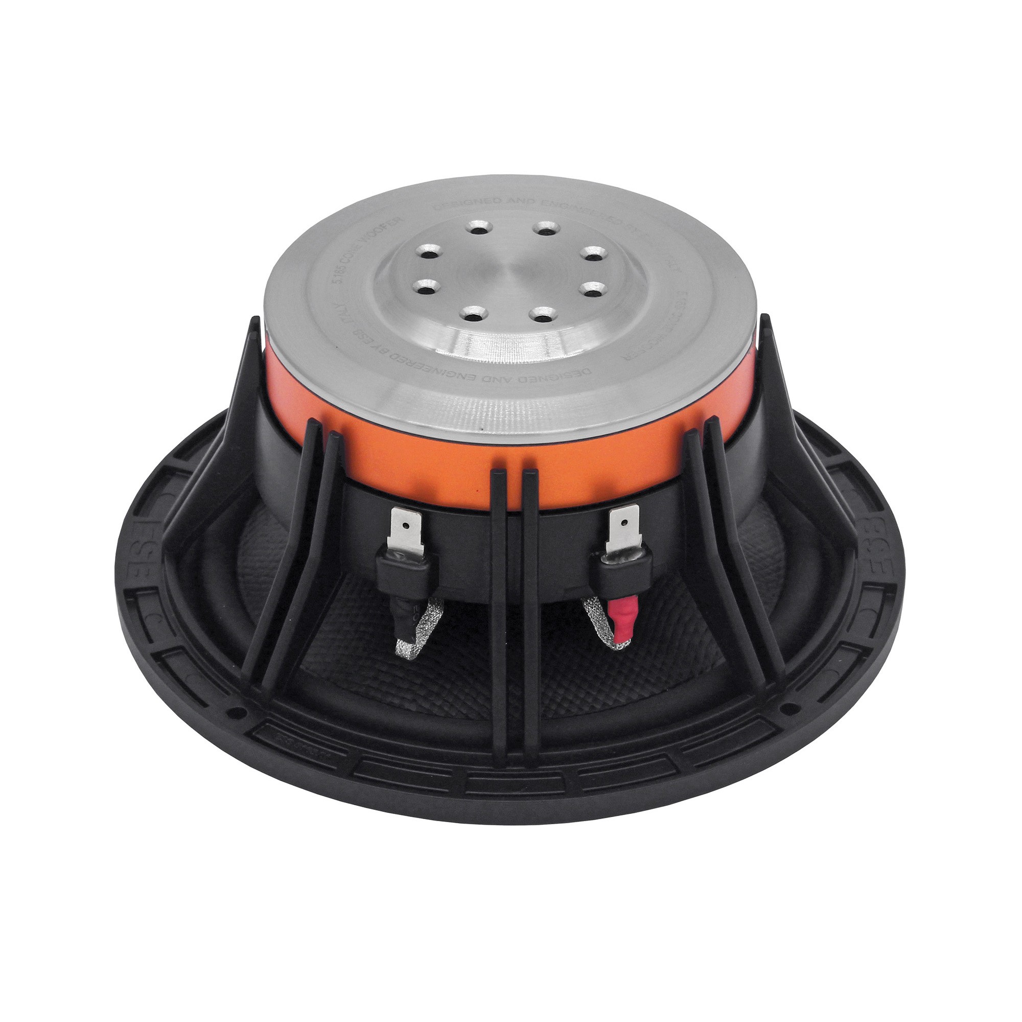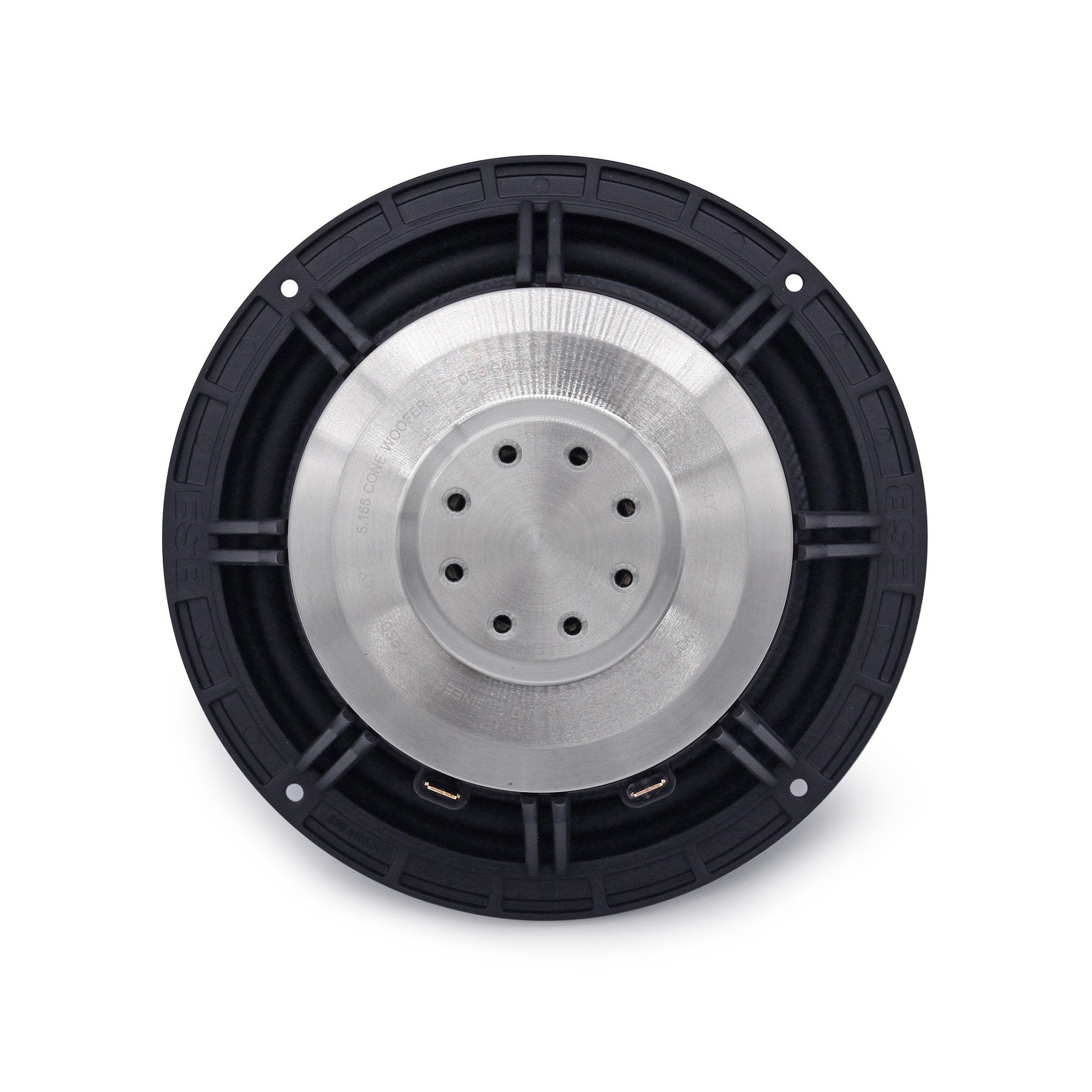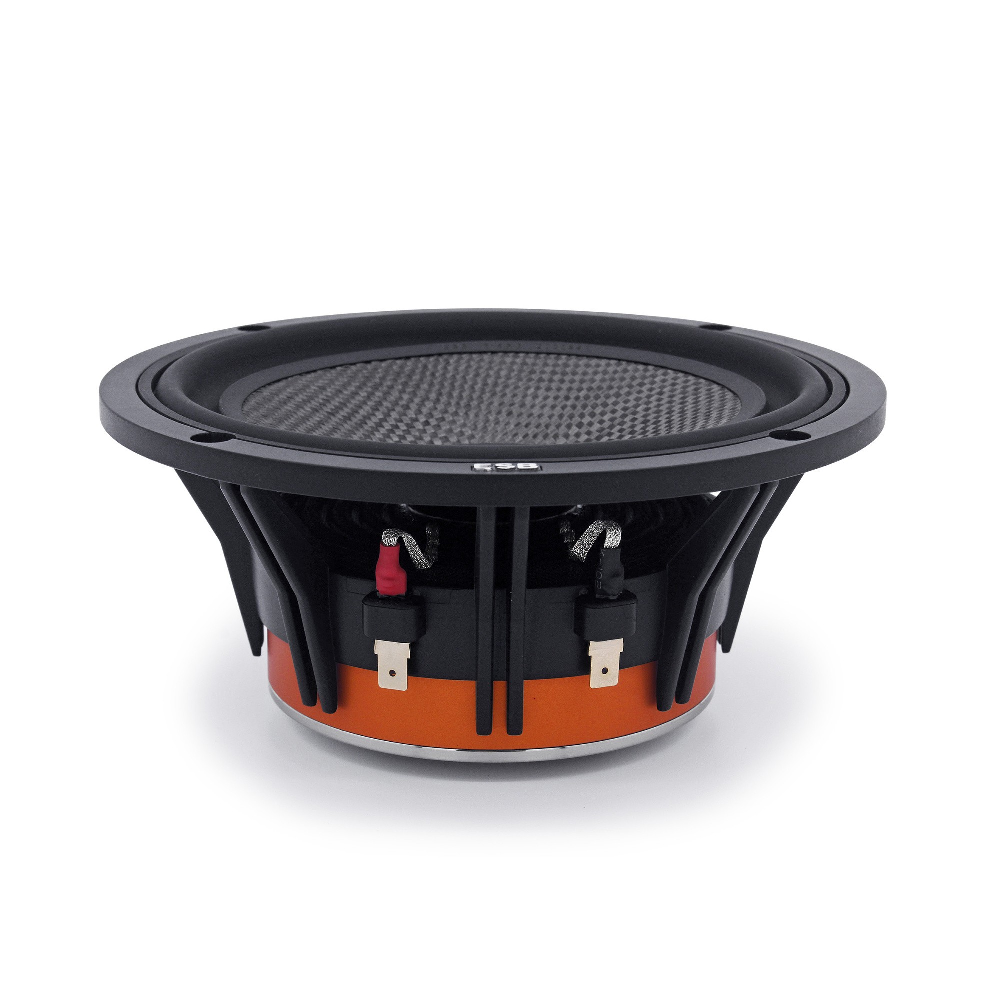 Na prvý pohľad zaujme krásna kompozitná membrána stredobasu, ktorá je zložená z krátkych vlákien spojených dohromady organickou polymérnou matricou. Medzi výhody PMC (Polymer matrix composite) patrí ľahká hmotnosť, vysoká tuhosť a pevnosť v smere ich výstuh. Napriek tomu bola membrána ešte vystužená karbónovými vláknami pre mimoriadnu tuhosť kombinovanú s veľmi nízkou hmotnosťou. Nemenej luxusne pôsobí aj osemlúčový kôš reproduktorov, ktorý je vyrobený z ABS plastu a aj k jeho ďalšiemu vystuženiu boli použité karbónové vlákna. Tieto materiály umožňujú excelentné antirezonančné vlastnosti a unikátna konštrukcia rámu zaisťuje vysokú štrukturálnu a torznú tuhosť. Kovové diely reproduktorov sú vyrobené z ušľachtilého materiálu a sú obrábané na CNC stroji pre maximálnu linearitu magnetického toku a minimálne magnetické straty. To výrazne znižuje skreslenie pri vysokých úrovniach výkonu. Do magnetického poľa bol navyše vložený prstenec z čistej medi, aby sa znížilo harmonické skreslenie. Veľká pozornosť bola tiež venovaná axiálnej a radiálnej ventilácii pohyblivej cievky, aby bola zaistená manipulácia s vysokým výkonom, znížené skreslenie a zvýšená odolnosť. Odstupňovaná zadná časť umožňuje veľmi dlhý pohyb membrány. 25 mm CCAW (Copper Clad Aluminium Wire) dvojvrstvová kmitacia cievka navinutá na hliníkovom ráme umožňuje výnimočné spracovanie výkonu a reprodukciu bez kompresie pre zvládnutie najnáročnejších hudobných pasáží. Zaujme tiež exkluzívny ESB dizajn dvojvlnného pryžového odpruženia TSW (Twin Symmetrical Wave), ktorý zaisťuje prirodzenú reprodukciu nízkych frekvencií pri nízkej aj vysokej hlasitosti. A konečne veľký spider Conex® umožňuje hladký a jemný chod pri nízkych výchylkách a jemne drží membránu pri vysokých výchylkách, čím zvyšuje užitočný frekvenčný rozsah.