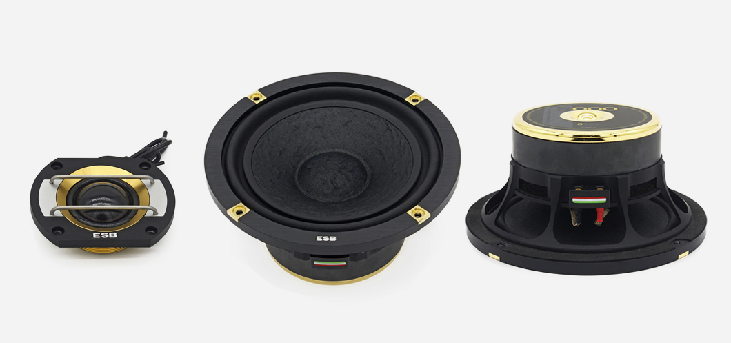 Snáď prvé, čo si ihneď všimnete, je úplne výnimočný vzhľad a spracovanie stredobasových reproduktorov. Kôš vyrobený z hliníkovej zliatiny je kompletne opracovaný numerickým riadením na CNC. Vďaka tomu je štruktúra koša veľmi tuhá a s prakticky nulovými toleranciami v prospech konzistentného výkonu a maximálneho prenosu energie z kmitacej cievky do membrány. A to so zvýšením účinnosti v nízkom rozsahu a absenciou rezonancií v strednom a vysokom rozsahu. Membrána z nestlačeného papiera, rovnako ako protiprachový kryt, predstavujú najlepší kompromis medzi tlmením a tuhosťou pre extrémne prirodzený zvuk bez zafarbenia alebo zmien. Vodoodpudivá úprava je taktiež vhodná pre aplikácie v drsnom prostredí. Veľký a vysoko kvalitný vinutý magnet (Y-35) zaručuje prebytok energie, vďaka ktorému sú špičky výchylky ľahko reprodukovateľné z basového reproduktora. Aj pri vysokých výchylkách pracuje cievka ticho a vždy vo svojom magnetickom poli. Starostlivé štúdium podporené analýzou FEM umožnilo navrhnúť kovové časti magnetu tak, aby sa maximalizoval tok presne okolo pohyblivej cievky a aby bol lineárny po celú dobu výchylky. Vetranie je zaistené veľkým otvorom v spodnej časti, kde jeho tvar znižuje hluk z prípadných turbulencií na nepočuteľnú úroveň. Kmitacia cievka s veľkým priemerom využíva hliníkovú podperu pre lepší rozptyl teploty. Ďalej je celá kmitacia cievka vystavená vonkajšiemu vzduchu cez veľké štrbiny v koši (chránené prachovou hubkou). Pri reproduktoroch série 8000 hrá každý detail dôležitú úlohu a preto sa v ESB zamerali aj na exkluzívnu dizajnovú svorku, ktorá akceptuje káble s veľkým prierezom.