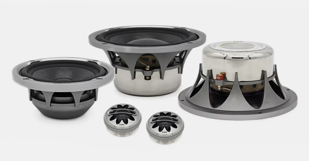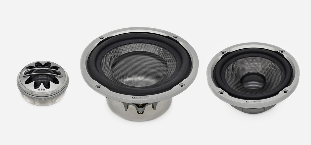 Reproduktory ESB radu 9000 (Novemila) patria k technologicky najvyspelejším reproduktorom do auta, aké boli kedy vyrobené. A tiež k tým najelegantnejším! Technológia a dizajn sa spájajú v novej a neobvyklej estetike a to vďaka výnimočnému kvetinovému tvaru okolo membrány výškového reproduktora a tiež na košoch basového a stredového reproduktora. Tento luxusný dizajn však nevznikol iba z estetického hľadiska. Je výrazom inovácie, ktorá umožní, aby akustický lom na okrajoch výškových reproduktorov bol menej výrazný a prispôsobí sa designu reproduktorov. Analógiu môžete nájsť v nových motoroch Rolls-Royce pre najmodernejšie lietadlá, ktoré disponujú rovnakým tvarom na zadnej hrane. Presne tam, kde vychádza vzduch a tvorí sa hlavná turbulencia. S novou konštrukciou tieto motory dosiahli veľké výhody ako je zníženie hluku v kabíne o 10 dB a zároveň zníženie spotreby paliva o 10 %. Nejde však len o náhodnú podobnosť. Konštrukcia high-end reproduktorov ESB aj motorov Rolls-Royce vychádzajú z rovnakého predpokladu a to znížiť nežiaduce vlastnosti zvuku na okraji reproduktorov, respektíve motorov. ESB Audio 9.6K3 predstavuje referenčný trojpásmový set zložený zo 165 mm basového reproduktora, 100 mm stredového reproduktora a 28 mm výškového reproduktora, ktorý zaujme nielen použitými technológiami a dizajnom, ale najmä úplne ohromujúcim zvukom.