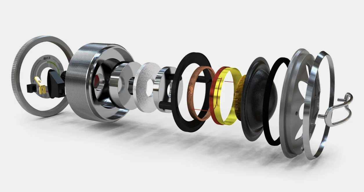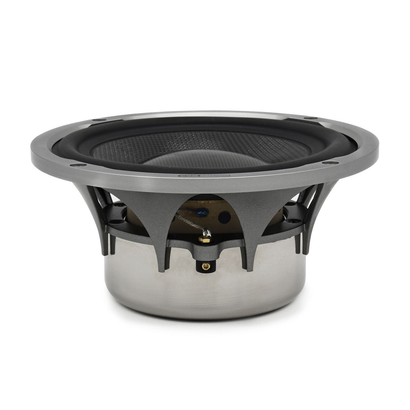 Najprv sa venujme prekrásnemu košu stredobasových a stredových reproduktorov. Ten je vyrobený zo zliatiny hliníka, vďaka čomu je extrémne tuhý a zaistí maximálnu stabilitu pre všetky pohyblivé časti reproduktora. Kôš je však tiež veľmi "otvorený", aby umožnil bezproblémový priechod tlaku zo zadnej strany membrány. To zaisťuje rovnomerný tlak na obe strany membrány a znižuje deformácie a skreslenia. Nádherná membrána reproduktorov je vyrobená z pravých tkaných karbónových vlákien, ktoré sú ešte vystužené epoxovanou živicou. Snáď neexistuje ideálnejšia kombinácia ľahkosti a tuhosti na vyváženie výchyliek membrány pri nízkych a veľmi vysokých frekvenciách. Špeciálny dizajn zavesenia membrány z čistého NBR je dokonalým a plynulým pokračovaním tvaru membrány, ktorá nadväzuje na design koša. Perfektné spojenie eliminuje nežiaduce rezonancie a deformácie membrány. Dokonca aj zvukové vlny vo vnútri membrány sa rozptýlia oveľa lepšie ako v prípade tradičného zavesenia. Hrúbka odpruženia je navyše diferencovaná na uľahčenie malých pohybov a zlepšenie celkového zvuku reproduktora. Vysoko kvalitné neodymové duálne magnety chránené CNC hliníkovým krytom zaisťujú enormnú magnetickú silu aj po hodinách používania a generujú neuveriteľnú hnaciu silu pre dokonalé ovládanie cievky a enormnú rýchlosť prechodovej odozvy. 25 mm cievka pre stredné pásmo a 75 mm pre woofer je vyrobená zo špeciálneho superľahkého materiálu pre rozšírený rozsah a neuveriteľný výkon. Indukčný krúžok z 99,9% čistej medi vo vnútri kmitacej cievky znižuje jej indukčnosť asi o 90% a to je dôvod, prečo stredy môžu perfektne fungovať pri veľmi vysokých frekvenciách, čo drasticky znižuje harmonické skreslenie.