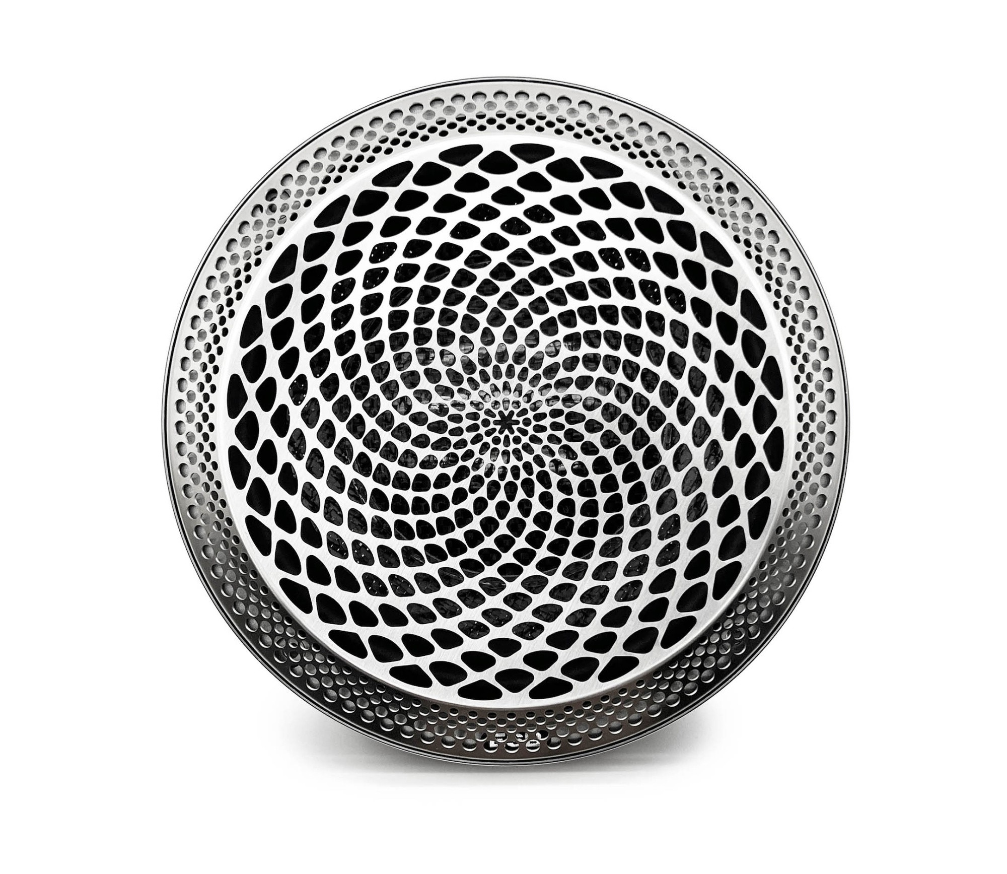 - Práškovo lakovaný kôš reproduktora z hliníkového odliatku kladie veľmi malý odpor pri prechode vzduchu a jeho tvar znižuje vibrácie a rezonancie.