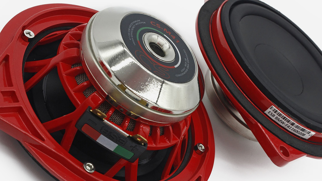 Najdôležitejšou časťou ozvučenia vozidiel BMW je predný audio systém, ktorý zahŕňa výškové reproduktory, stredové reproduktory s priemerom 100 mm a 8" subwoofery pod prednými sedadlami. Trojpásmová audio sada do BMW sa dnes vyrába od mnohých značiek a tiež ESB má takýto systém už od roku 2013. Teraz však ESB predstavuje nový audio systém vyrobený v červenej farbe Ferrari, ktorý predbehne všetky známe OEM reproduktory do vozidiel BMW. V tejto sade nájdete hodvábne výškové reproduktory a špecifické stredobasy s rovnakým tvarom ako originálne reproduktory BMW. Samozrejmosťou sú rovnaké konektory pre jednoduchú a rýchlu inštaláciu. Tak ako všetky reproduktory ESB, tak aj táto sada do BMW predstavuje vysoko kvalitný zvuk, ktorý uspokojí aj veľmi náročných klientov. K dispozícii sú aj špecifické subwoofery, ktoré sú umiestnené pod prednými sedačkami. Pre maximálne využitie týchto vynikajúcich reproduktorov odporúčame zapojenie na zosilňovač s DSP procesorom. V portfóliu produktov ESB sa tieto reproduktory radia do modelového radu 6000, čo značí zaradenie do hi-endovej oblasti. Môžete sa teda spoľahnúť na veľmi pokročilý zvuk a spracovanie.