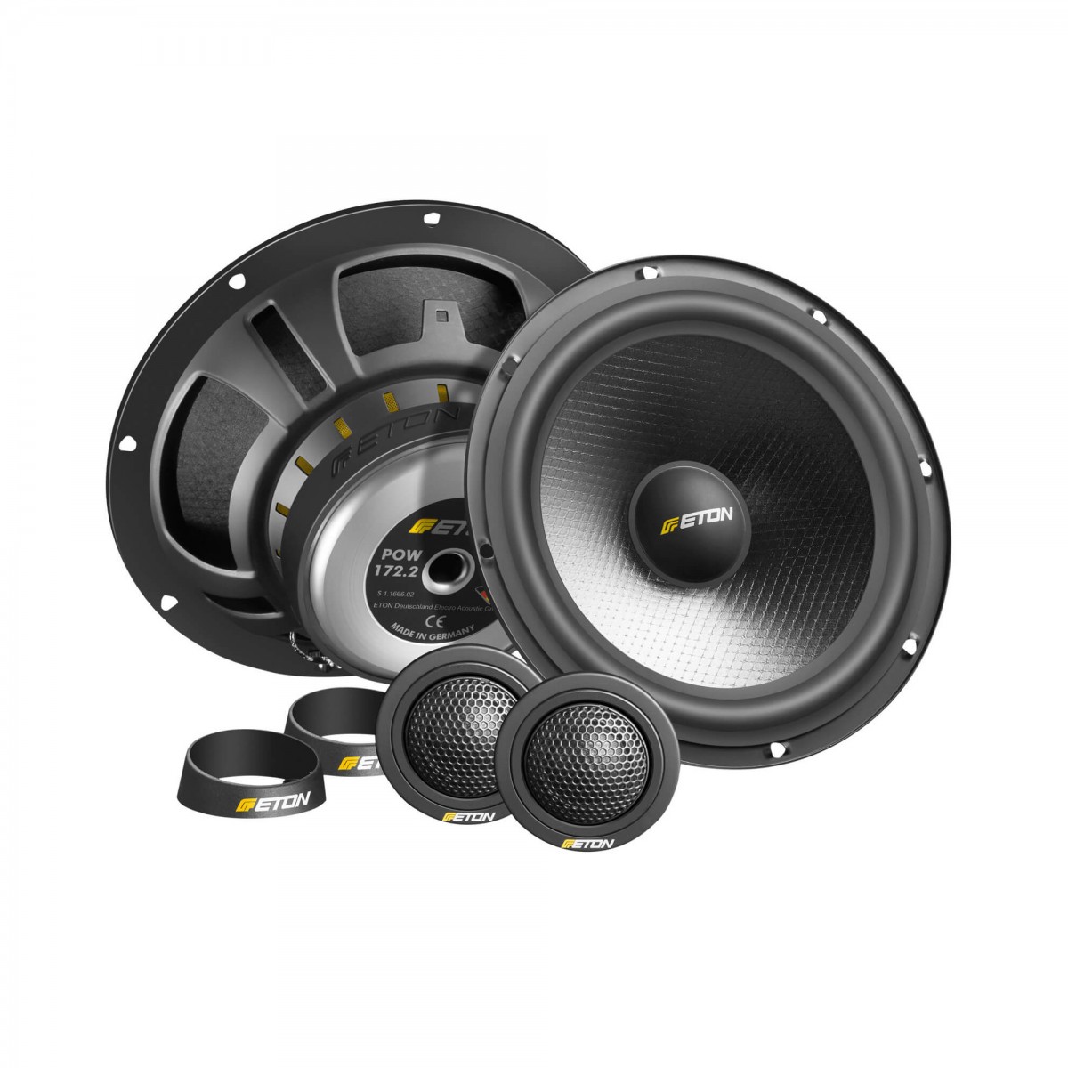 POW 172.2 píšu ďalšiu etapu veľmi úspešných reproduktorov do auta. Tento systém zažiari novým dizajnom a množstvom progresívnych funkcií. Eton POW 172 (1. generácia) bol zlomový systém - reálna citlivosť 89 dB umožňovala zapojenie priamo na autorádio, a pre ETON typické kvalitné spracovanie, sa tieto reproduktory stali priekopníkom v roku 2010. Teraz je POW 172 späť - v novom, kompletne prepracované a pripravené znovu sa stať bestsellerom. Vizuálne systém značne vzrástol, kôš v prevedení čierny satén a gumovým krytom magnetu sa stal výrazne pútavejším. Membrána sa skladá zo zmesi skla a papiera, ktorá zaručuje absolútne harmonický zvuk a neuveriteľne hlboké basy - typické pre rad Eton POW. Všeobecne platí, že POW 172.2 nemá žiadne problémy ani s reprodukciou veľmi náročnej hudby, kde je veľké množstvo nástrojov. Nový, silnejší magnet a po novom zostavená frekvenčná výhybka dokončujú systém vizuálne. 3ohmová impedancia basového reproduktora vyvinie vyšší výkon pri zapojení na samotné autorádio. 25 mm, hliníkom potiahnuté výškové reproduktory dokážu zahrať kryštalicky čisté a presvedčivé objemné detaily. Nástupcovi POW 172 zostávajú silné stránky 1. generácie a pridáva sa vylepšený vzhľad a výkon. Úspešný príbeh pokračuje.