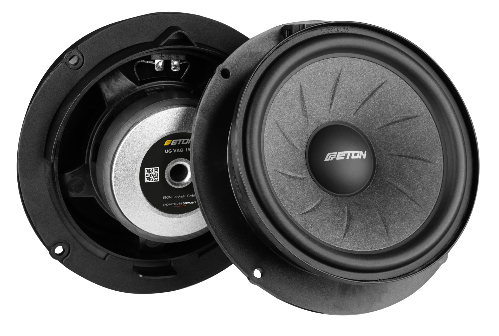 ETON zvukový upgrade pre mnoho modelov VW, Škoda alebo Seat. 15cm (6″) UG VAG 150 stredobasový reproduktor s dlhým zdvihom imponuje zdokonalenou technológiou membrány a optimalizovaným pohonným systémom pre zvýšenú účinnosť. UG VAG 150 ponúka špičkový výkon za neprekonateľný pomer cena/výkon s jednoduchou inštaláciou. Reproduktor je 100% plug & play, takže ho možno ľahko dodatočne namontovať, čo je zvlášť dôležité pre leasingové vozidlá. UG VAG 150 sa dokonale integruje do modelov VAG bez akýchkoľvek viditeľných zmien vozidla. Systém je ľahko pripojiteľný prostredníctvom originálneho konektora. Novo vyvinutá membrána poskytuje výrazné zvýšenie výkonu, najmä v oblasti basového podania. Rebrovaním zosilnená papierová membrána so sklenými vláknami je vyrábaná špeciálnym výrobným procesom, je obzvlášť ľahká a zároveň extrémne odolná proti skrúteniu. Tým sa stáva ideálnym základom pre vysoko kvalitný reproduktor a zaisťuje silný, vyzretý zvuk aj napriek relatívne malej ploche membrány. Basy sú reprodukované silno s potrebnou dynamikou a presnosťou, bleskovo rýchle údery z ničoho, kontúrované a precízne. Hlasy sú plné, prirodzené a plné jemných detailov. Extrémne silný feritový magnet s veľkým pólovým jadrom poháňa membránu s veľkou silou. Vďaka svojej impedancii 3 Ω je UG VAG 150 zvlášť účinný aj v kombinácii s OEM rádiami / hlavnými jednotkami bez dodatočného zosilňovača. Akustický tlak 89 dB a hudobný výkon 80 W - "to hovorí samo za seba". Koš z polyamidu zosilneného sklenými vláknami s integrovanou tesniacou prírubou je zvlášť nízkorezonančný, odolný voči torzii a presne pasuje. Vďaka špecifickému 4-bodovému uchyteniu VAG a charakteristickému konektoru VAG sa UG VAG 150 ľahko inštaluje. Balenie obsahuje voliteľné nízkofrekvenčné výhybky, ktoré umožňujú optimálne vyladenie zvuku vo vozidle. UG VAG 150 je ideálny pre kombináciu so sadou výškových reproduktorov ETON UG VAG 25 a hodí sa do rôznych modelov VAG: T6.1, Polo V, Golf 6 vzadu, E-Golf, Golf 8, Tiguan II vzadu, T-Roc, T-Cross, Caddy a mnoho ďalších.