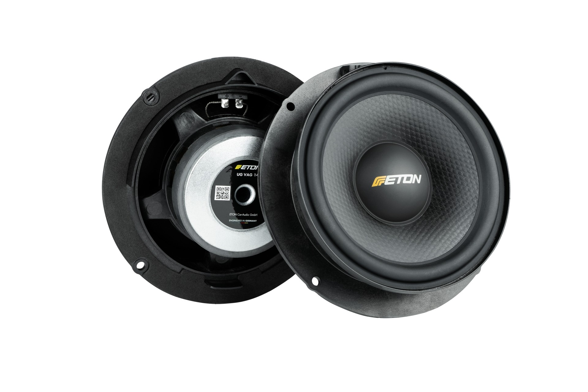 ETON je známy svojím radom Plug & Play Upgrade systémy a je už roky priekopníkom v oblasti plnej integrácie a reproduktorov šitých na mieru. Teraz bol rad rozšírený o stredobasový reproduktor UG VAG 14 Universal 145 mm (6“). Rad súčasných modelov VAG (VW Golf 8, T6.1, Polo V a mnoho ďalších) je vybavený 145 mm basovým reproduktorom. UG VAG 14 bol preto kompletne nanovo vyvinutý. Zaujme 2vrstvovou papierovou membránou zo sklenených vlákien, známym zo série POW. Táto extrémne tuhá a tlmená membrána znamená vysokú stabilitu, rovnako ako jej teplý, plný zvuk a dynamické, silné údery. Menšia plocha membrány, iba 145 mm, je kompenzovaná systémom silných feritových magnetov a nanovo vyvinutým priestorovým zvukom s dlhým dosahom, takže UG VAG 14 nie je v žiadnom prípade horší ako konvenčný 165 mm stredobasový reproduktor: UG VAG 14 zaujme svojou ostrou, dynamickou a tvarovanou reprodukciou basov, vyladenú pre neustále používanie. Vďaka premyslenej konštrukcii a zladeniu je možné UG VAG 14 integrovať do rôznych vozidiel od veľkých (Transporter T6.1), až po malé (Polo V). Odolná kmitacia cievka s trvale elastickým stredením umožňuje prehrávanie s nízkym skreslením aj pri vysokých úrovniach. Po novom vyvinuté Plug & Play reproduktory vyrobené z plastu a vystužené sklenými vláknami sú extrémne odolné proti skresleniu a zaručujú 100% presnosť montáže. Basový/stredobasový reproduktor má VAG špecifické konektory a sada obsahuje voliteľnú nízkopriepustnú káblovú frekvenčnú výhybku, ktorá umožňuje optimálne ladenie vo vozidle. UG VAG 14 sa hodí do rôznych modelov VAG: VW T6.1, Polo V, Golf 6 vzadu, E-Golf, Golf 8, Tiguan II vzadu, T-Roc, T-Cross, Caddy a mnoho ďalších. (Aktuálny zoznam kompatibility na: www.eton-caraudio.com.)