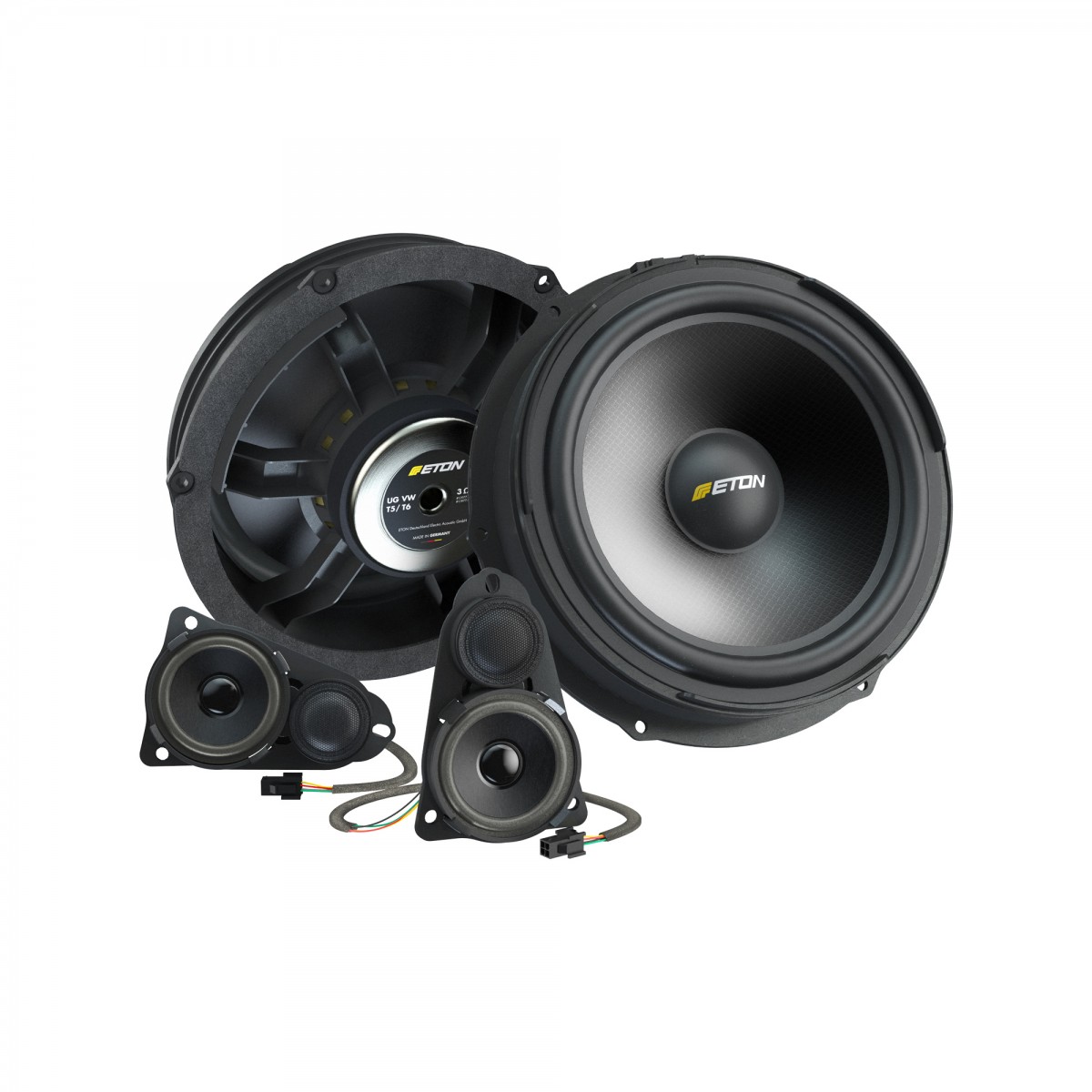 Špičkové 3pásmové, komponentné reproduktory vhodné pre Plug & Play montáž do auta Volkswagen Transporter T5 - pre predné dvere. Set je zostavený a naladený priamo na akustiku dverí tohto vozidla. V balení nájdete 19 mm výškové reproduktory Eton s výhybkou, 50 mm stredové reproduktory od Eton a 200 mm ploché stredobasy Eton. Kôš plochého stredobasu je vyrobený z polyamidu, je spevnený pomocou sklených vlákien. Vyrobené v Nemecku. Skvelý upgrade ozvučenie pre Volkswagenu Transporter T5. Súčasťou balenia sú frekvenčné výhybky a montážne príslušenstvo.