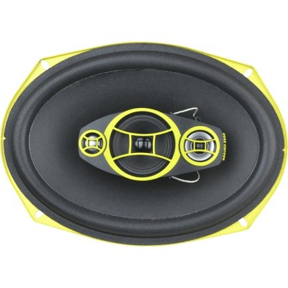| Typy reproduktorov Koaxiálne reproduktory: Koaxiálne reproduktory sa vyznačujú konštrukciou tzv. Všetko v jednom. Výškový a stredobasový reproduktor sú v jednom koši. Výhodou je jednoduchšia montáž, ale vďaka spojeniu resp. blízkosti pásiem v jednom reproduktore, sa zvyčajne zníži kvalita zvuku. Spravidla uprostred stredobasového reproduktora, je výškový reproduktor, ktorého kmitacia cievka pracuje v druhej vzduchovej medzere spoločného magnatického obvodu. Trojpásmový koaxiálny reproduktor sa skladá zo stredobasového reproduktora, v predu na osobitnom nosníka je stredový reproduktor a samostatný výškový. Komponentné reproduktory: Komponentné reproduktory sa vyznačujú rozdelením na jednotlivé frekvenčné pásma, výškové + stredobasové + popr. basové pásmo. Jednotlivé reproduktory sa dajú umiestniť úplne oddelene, čo má za výsledok lepší zvukový aj akustický prejav. V drvivej väčšine prípadov komponentných reproduktorov je dodávaná aj externá výhybka, ktorá rozdeľuje výškové, stredové / stredobasové a u třípásma aj basové pásmo popr. umožňuje nastavenie decibelovej úrovne u výškového reproduktoru (napr. +2 dB, 0 dB, -2 dB), strmosti (napr. 6dB / okt. 12dB / okt.) či aktívne alebo bi-amp zapojenia. | Koaxiálne 4pásmové |