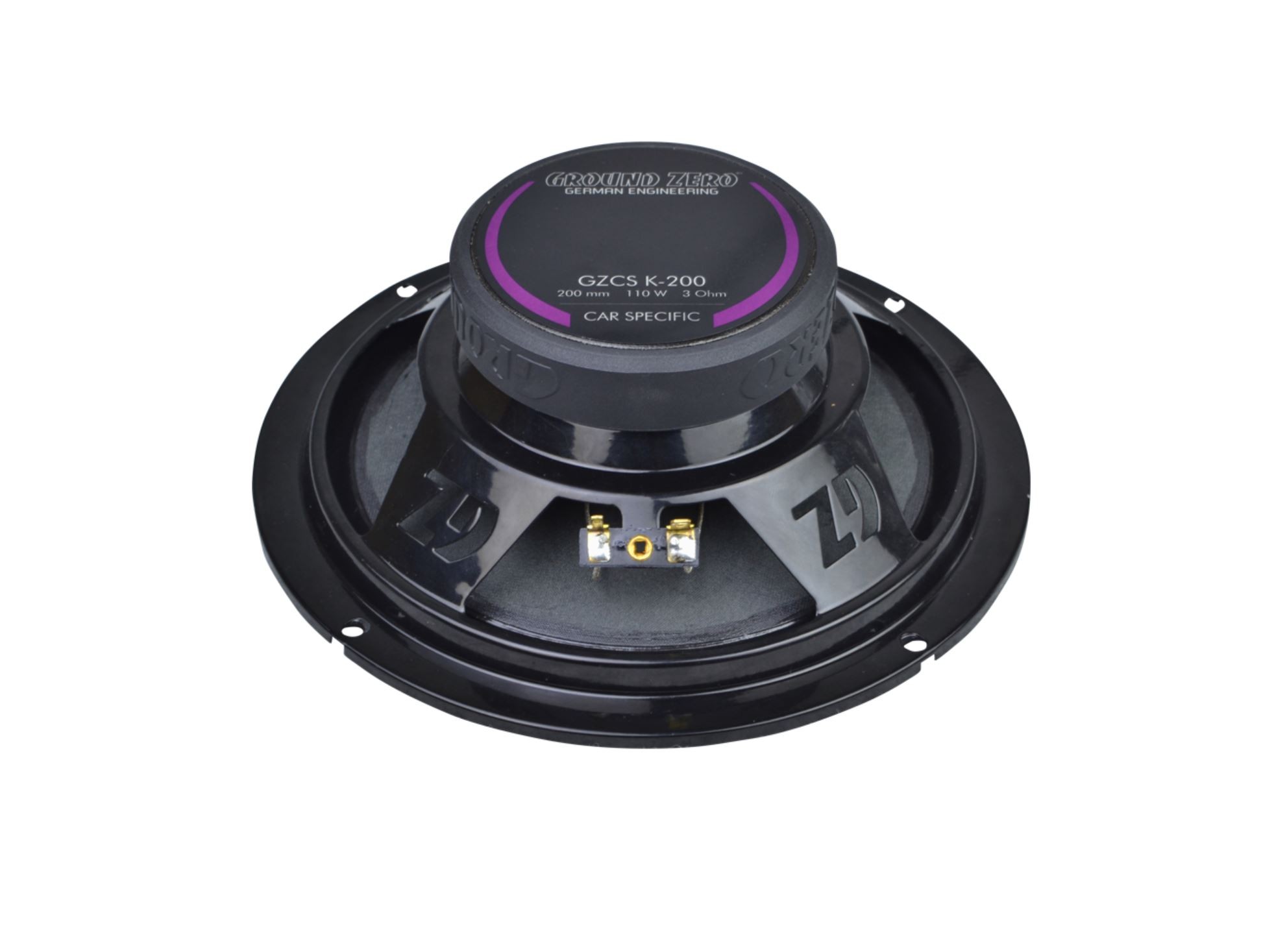 Väčšina OEM reproduktorových systémov nemôže úplne uspokojiť očakávania sofistikovaných zákazníkov. Najmä základná výbava necháva veľký priestor na vylepšenie dynamiky a kvality zvuku. Inštalácia aftermarket reproduktorov je jednoduchý spôsob, ako vylepšiť audio systém. Rad CAR SPECIFIC sa skladá z rôznych komponentov navrhnutých pre jednoduchú modernizáciu OEM audio systémov moderných automobilov. Ground Zero GZCS K-200VW je 200 mm stredobasový reproduktor pre vozidlá značky VW a identické značky.