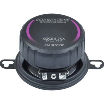 Väčšina OEM reproduktorových systémov nemôže úplne uspokojiť očakávania sofistikovaných zákazníkov. Najmä základná výbava necháva veľký priestor na vylepšenie dynamiky a kvality zvuku. Inštalácia aftermarket reproduktorov je jednoduchý spôsob, ako vylepšiť audio systém. Rad CAR SPECIFIC sa skladá z rôznych komponentov navrhnutých pre jednoduchú modernizáciu OEM audio systémov moderných automobilov. Ground Zero GZCS 8.7CX je univerzálny 87 mm 2pásmový koaxiálny reproduktorový systém.