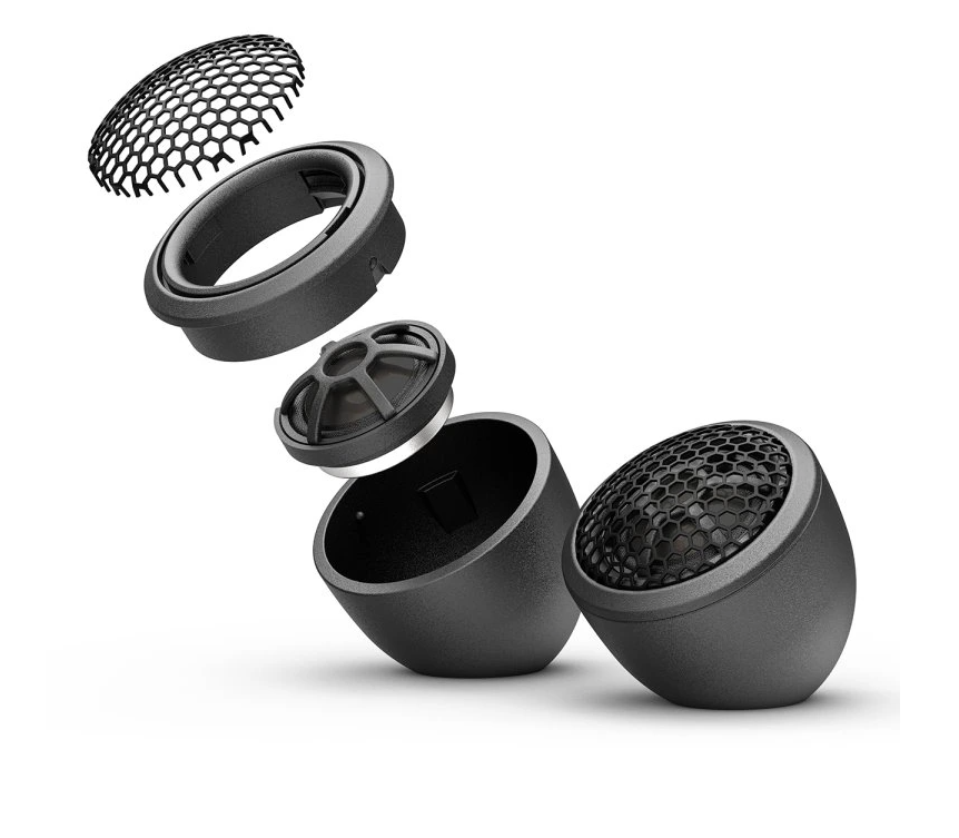 Výškový reproduktor s priemerom 0,75" / 20 mm je vybavený inovatívnou titánovou kupolou, ktorá kombinuje vynikajúcu stabilitu s nízkou pohyblivou hmotnosťou a vysokým vnútorným tlmením i enormnou tepelnou odolnosťou – dokonale stvorenou pre brilantnú reprodukciu výšok bez kompresie.