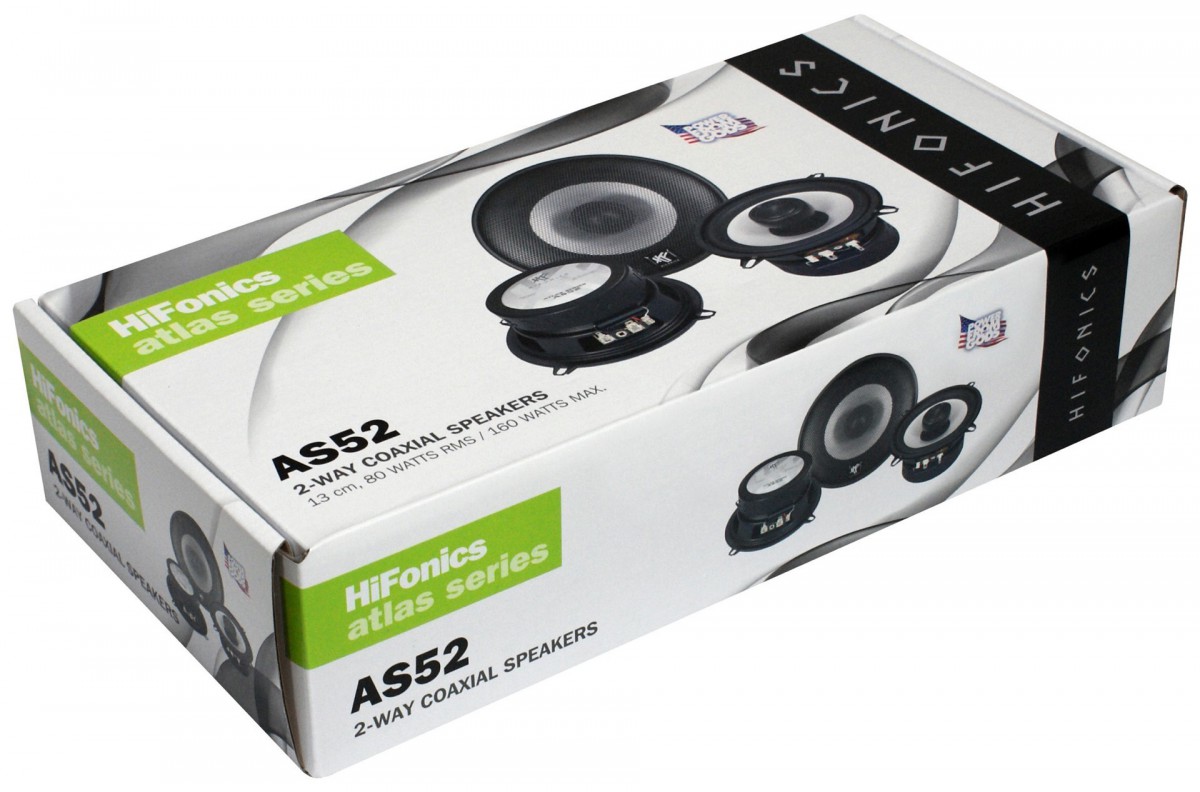 Najnovšie reproduktory vyššej triedy Atlas dosahujú na vysokú technickú úroveň zosilňovačov Hifonics. Nový rad koaxiálnych reproduktorov AS je dostupnejšie, dosahuje však najvyšších kvalít. Oceľový kôš, vysokoteplotné odolné cievky, polypropylénové membrány s hliníkovým vzhľadom a elastické butylovej závesy zaručujú perfektnú a dôrazný prednes stredobasov. Hodvábne výškové reproduktory zase dodajú zvuku presnosť a precíznosť aj v tých najvyšších frekvenciách. Jeden z najlepšie znejúcich koaxiálnych reproduktorov na dnešnom trhu!