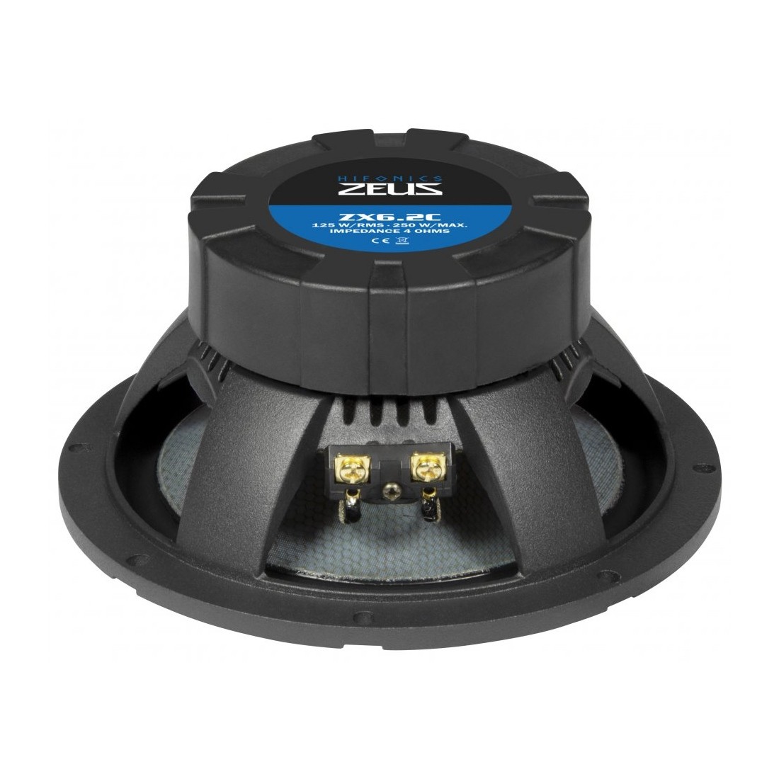Séria Zeus sa v Hifonics vyznačovala výkonom a vynikajúcim zvukom mnoho rokov. Prvýkrát sú okrem komponentných a koaxiálnych systémov k dispozícii aj jednotlivé komponenty samostatne, čo umožňuje 3pásmové kombinácie. Woofer v sade (predáva sa samostatne ako ZX6.2W) je dodávaný s hliníkovým liatym košom a hliníkovou fázovou zástrčkou. Jeho sendvičová membrána je vyrobená z trojlaminátového kompozitného materiálu, ktorý je mimoriadne ľahký a veľmi stabilný. Frekvenčný rozsah je extrémne lineárny a vyžaduje iba malé nastavenie korekcií. Výkonný magnetický motor s hmotnosťou 14 uncí (396,89 gramov) poháňa veľkú cievku s rozmermi 30,5 mm a poskytuje vysoký výkon. Celkovo je možný mechanický zdvih až do +/- 11 mm. Samostatne sú tiež dostupné 25 mm hodvábne neodymové výškové reproduktory ZX6.2T. Vrcholom 2pásmovej komponentovej sady však je, že je už pripravená na 3pásmovú prevádzku. K výhybke ZXO2 môžete tiež bez väčšej námahy pripojiť 7,5 cm voliteľné stredové reproduktory ZXM3. Stredové reproduktory tiež žiaria vynikajúcimi komponentmi, ako je liaty hliníkový kôš, hliníková membrána, veľká 25 mm kmitacia cievka a extra zadný ventilovaný spider a výkonný neodymový pohon.