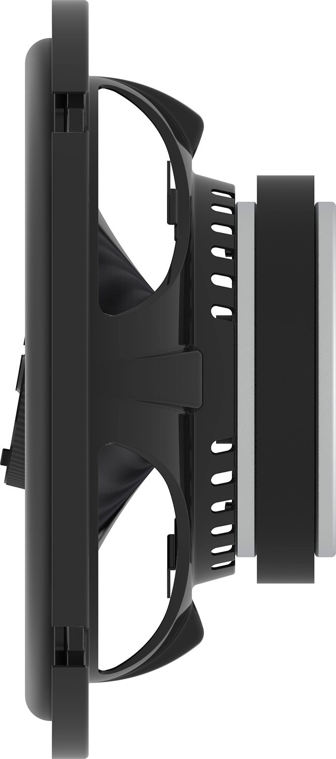 | Typy reproduktorov Koaxiálne reproduktory: Koaxiálne reproduktory sa vyznačujú konštrukciou tzv. Všetko v jednom. Výškový a stredobasový reproduktor sú v jednom koši. Výhodou je jednoduchšia montáž, ale vďaka spojeniu resp. blízkosti pásiem v jednom reproduktore, sa zvyčajne zníži kvalita zvuku. Spravidla uprostred stredobasového reproduktora, je výškový reproduktor, ktorého kmitacia cievka pracuje v druhej vzduchovej medzere spoločného magnatického obvodu. Trojpásmový koaxiálny reproduktor sa skladá zo stredobasového reproduktora, v predu na osobitnom nosníka je stredový reproduktor a samostatný výškový. Komponentné reproduktory: Komponentné reproduktory sa vyznačujú rozdelením na jednotlivé frekvenčné pásma, výškové + stredobasové + popr. basové pásmo. Jednotlivé reproduktory sa dajú umiestniť úplne oddelene, čo má za výsledok lepší zvukový aj akustický prejav. V drvivej väčšine prípadov komponentných reproduktorov je dodávaná aj externá výhybka, ktorá rozdeľuje výškové, stredové / stredobasové a u třípásma aj basové pásmo popr. umožňuje nastavenie decibelovej úrovne u výškového reproduktoru (napr. +2 dB, 0 dB, -2 dB), strmosti (napr. 6dB / okt. 12dB / okt.) či aktívne alebo bi-amp zapojenia. | Koaxiálne 2 pásmové |