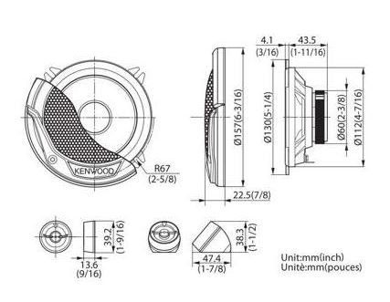 | Priemer stredobasu alebo koaxiálneho reproduktoraPriemer reproduktora uvádzame ako priemer celého reproduktoru, nie vrátane uchytenia, kedy u menších reproduktorov (87, 100, 130 mm) vyčnievajú ešte naviac úchytky. Niektoré reproduktory sú oválne a tam sa uvádza rozmer v palcoch, vždy najkratšiu strana k najdlhšej strane. Jeden palca je cca. 2,5 cm. | 130 mm |