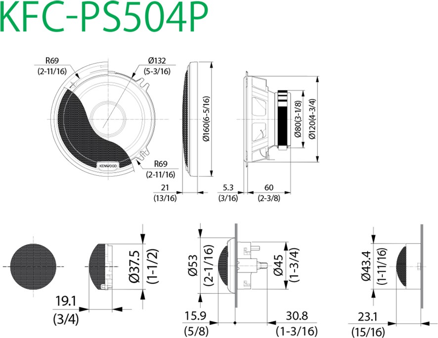 45 W RMS, 86 dB (SPL 1W / 1m), 4 Ω, montážna hĺbka stredobasu 60 mm
