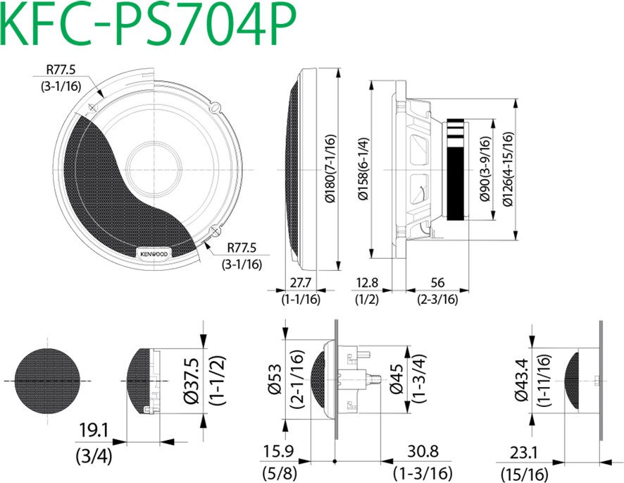80 W RMS, 86 dB (SPL 1W / 1m), 4 Ω, montážna hĺbka stredobasu 56 mm