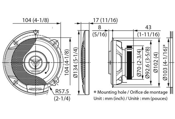 | Priemer stredobasu alebo koaxiálneho reproduktoraPriemer reproduktora uvádzame ako priemer celého reproduktoru, nie vrátane uchytenia, kedy u menších reproduktorov (87, 100, 130 mm) vyčnievajú ešte naviac úchytky. Niektoré reproduktory sú oválne a tam sa uvádza rozmer v palcoch, vždy najkratšiu strana k najdlhšej strane. Jeden palca je cca. 2,5 cm. | 100 mm |