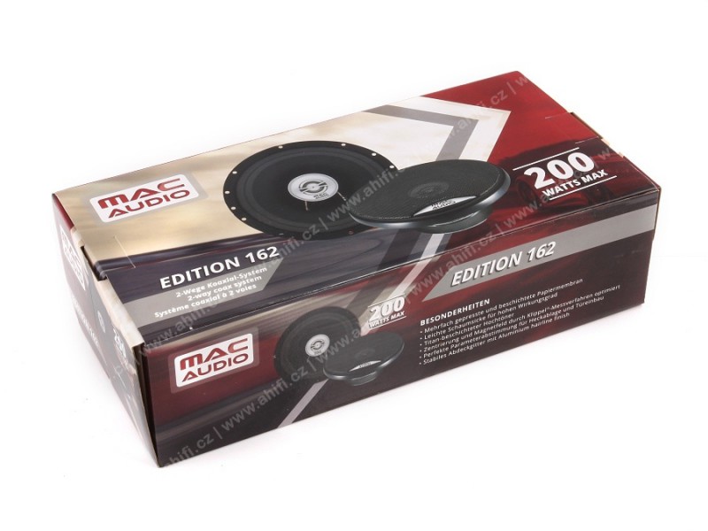 Nová základná rada reproduktorov Mac Audio Edition. Lakovaná membrána z lisovaného papiera. Výškové reproduktory v titánovom dizajne. V obsahu balení nájdete krycej mriežky, ktoré spoľahlivo chránia reproduktory pred poškodením membrány alebo závesu. Menej zaujímavý pomer cena/zvuk oproti iným radom reproduktorov Mac Audio.