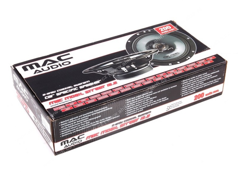 Reproduktory Mac Mobil Street 16.2 boli navrhnuté pre jednoduchú výmenu za originálne reproduktory. Tento 2pásmový koaxiálny systém prináša vysoký dynamický výkon vďaka použitiu kvalitných súčiastok a materiálov. Špeciálne lisovaná a lakovaná papierová membrána s ľahkým penovým závesom pre vysokú účinnosť. Čistý a prirodzený zvuk zaručí optimalizovaný výkon a magnetické pole reproduktora vďaka systému Klippel. Reproduktory Mac Mobil Street majú pevný, eloxovaný oceľový kôš s prídavným odvetraním kmitacej cievky. Výškový reproduktor titánového vzhľadu má navyše špeciálnu plastovú prírubu pre optimálnu kvalitu zvuku v dizajne Mac Audio. Skvelý zástupca kvalitného tovaru za rozumnú cenu!